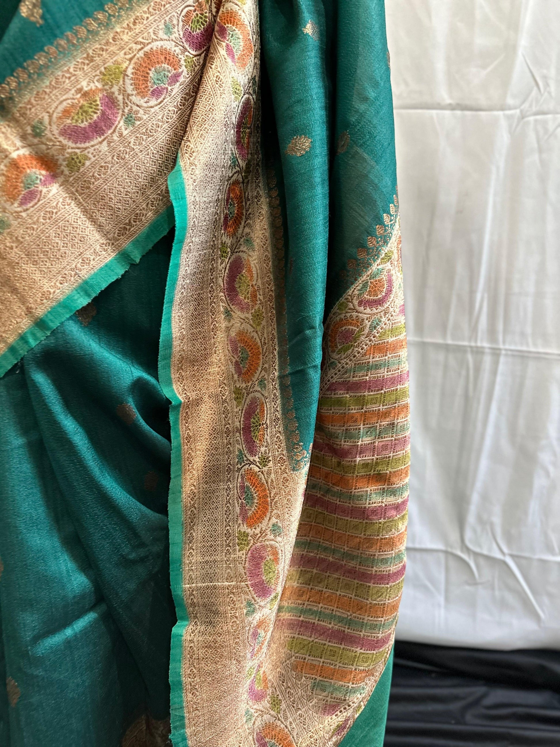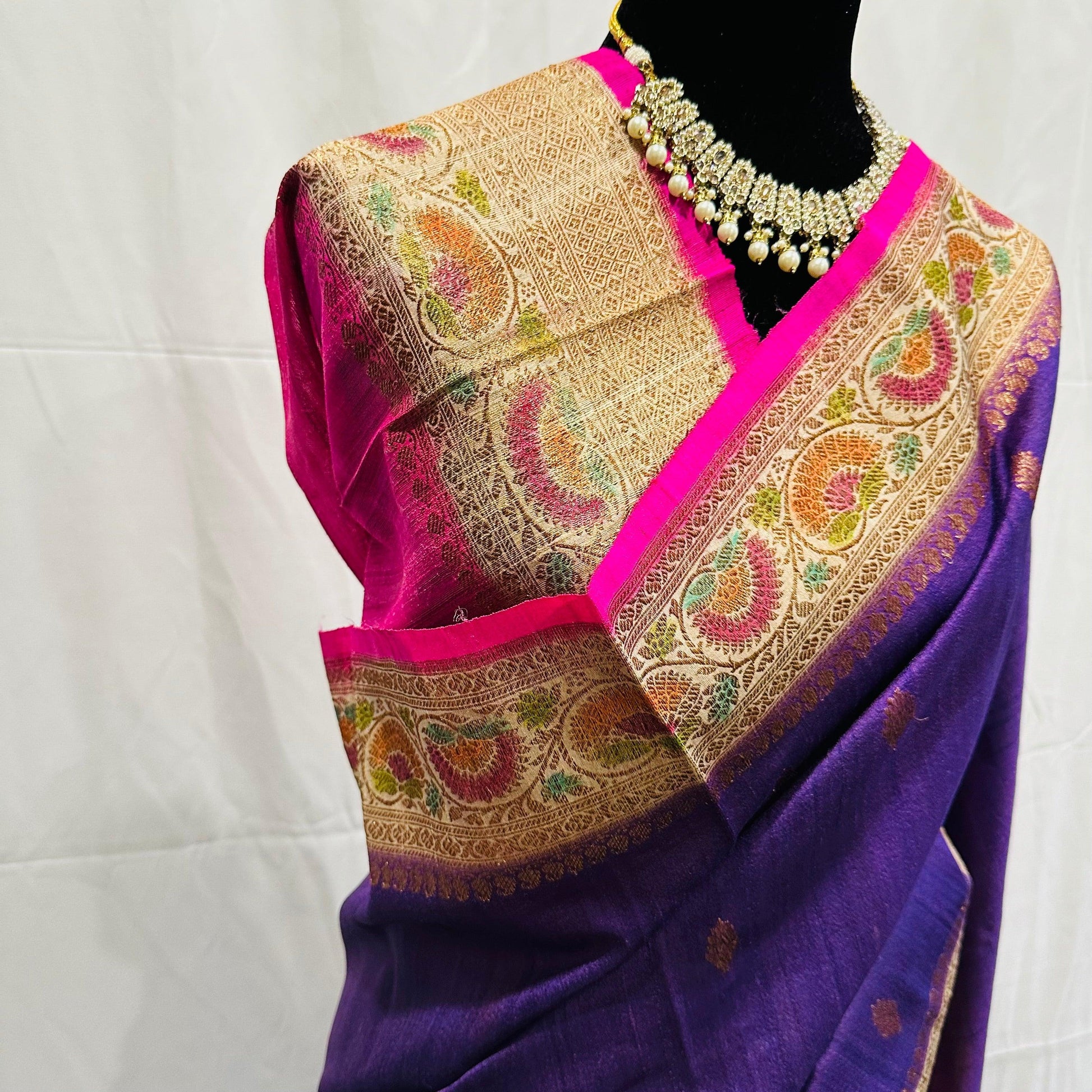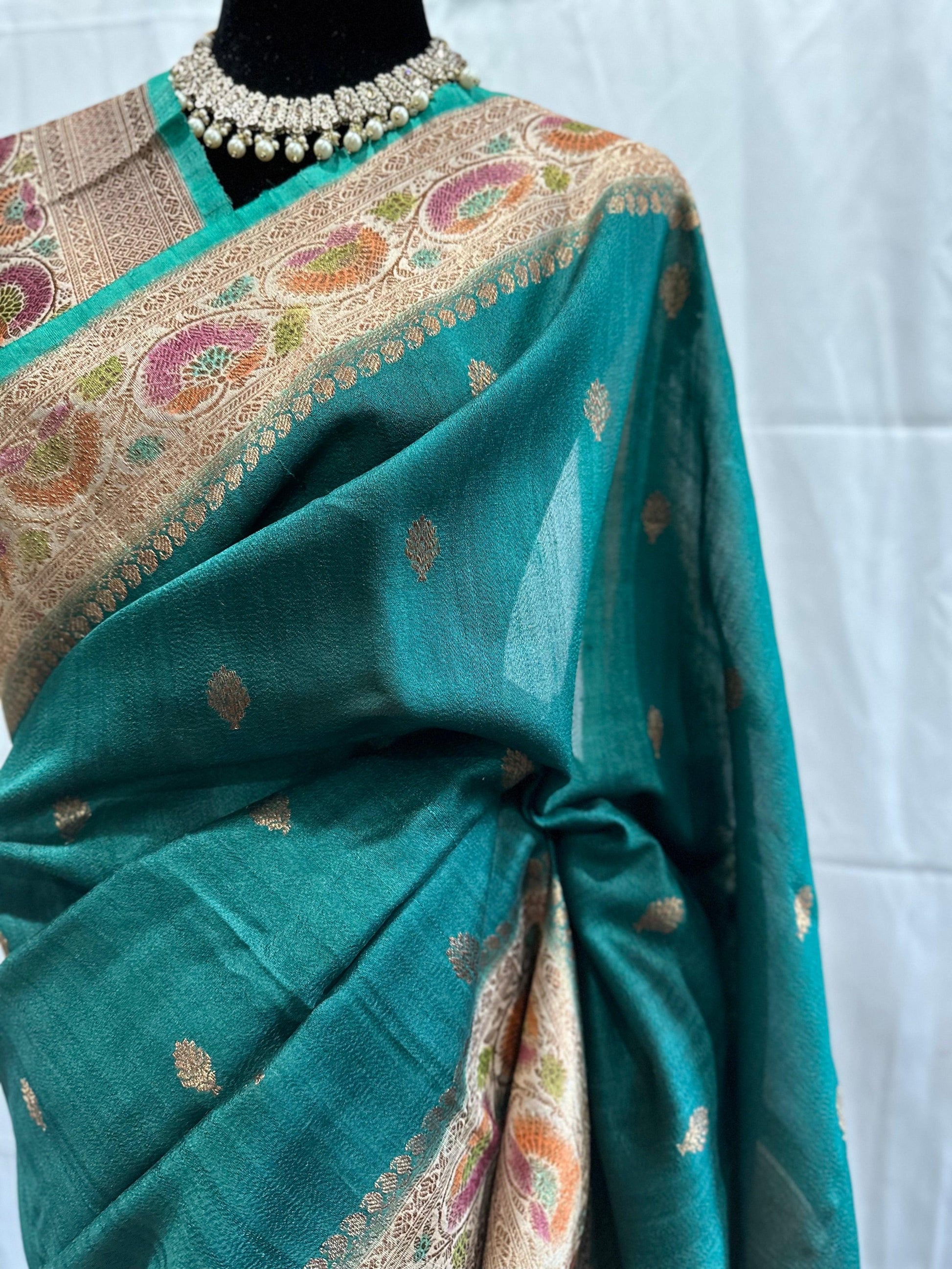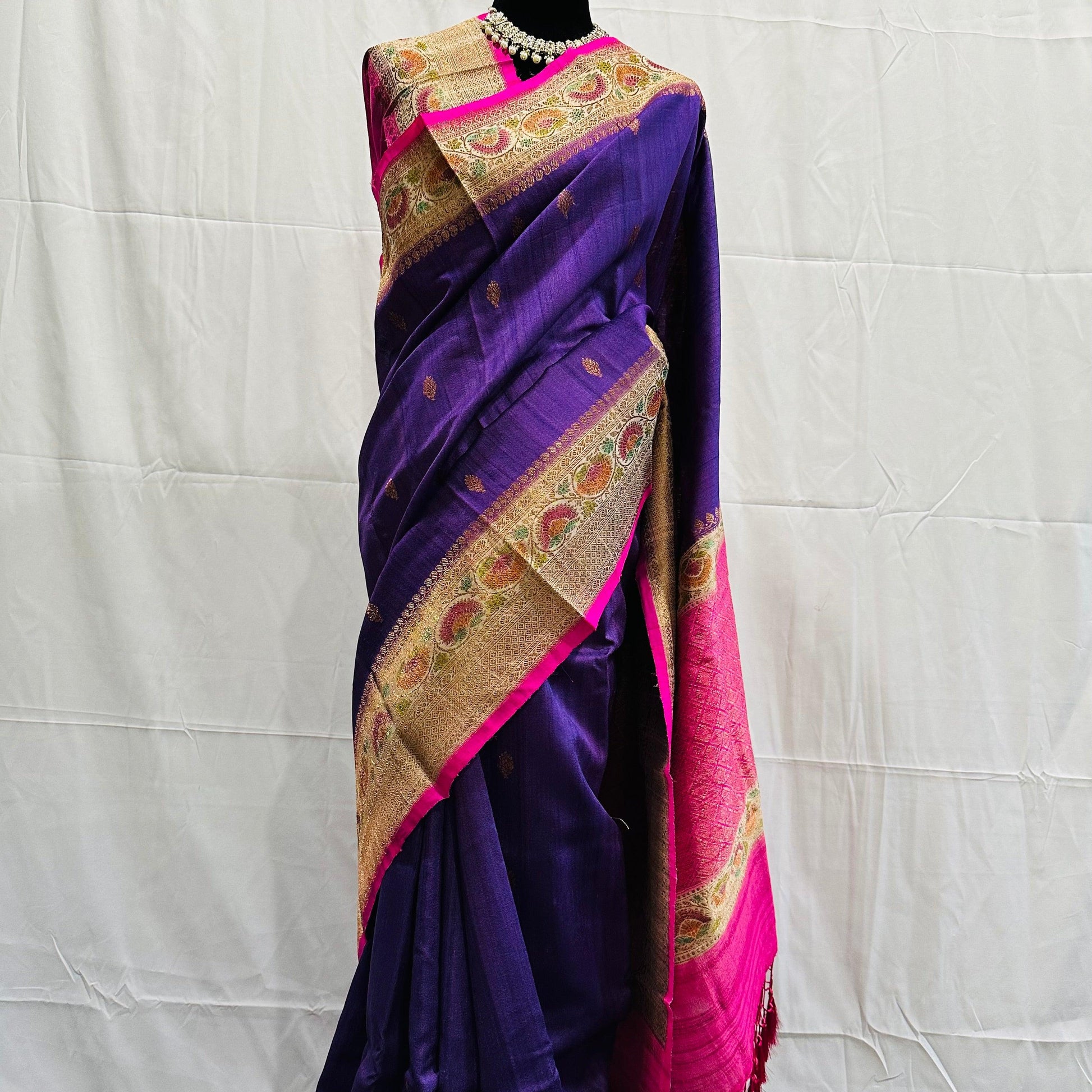 The soft and silky tussar banarasi saree with handbrush is something to cherish and a must every saree enthusiasts closet.