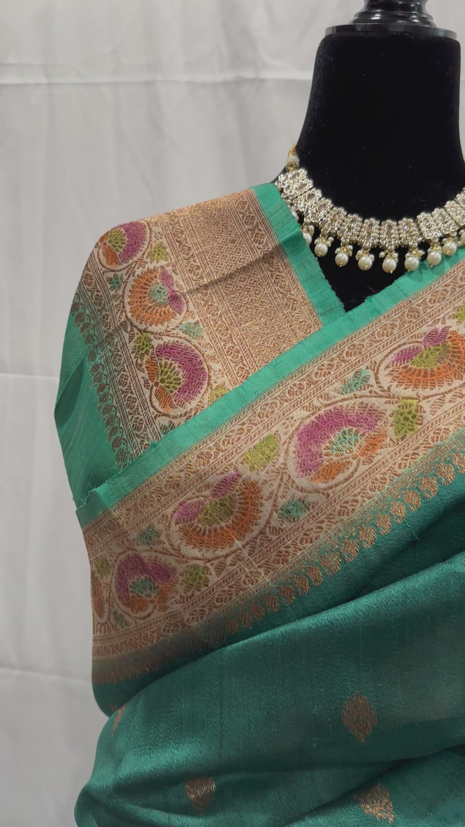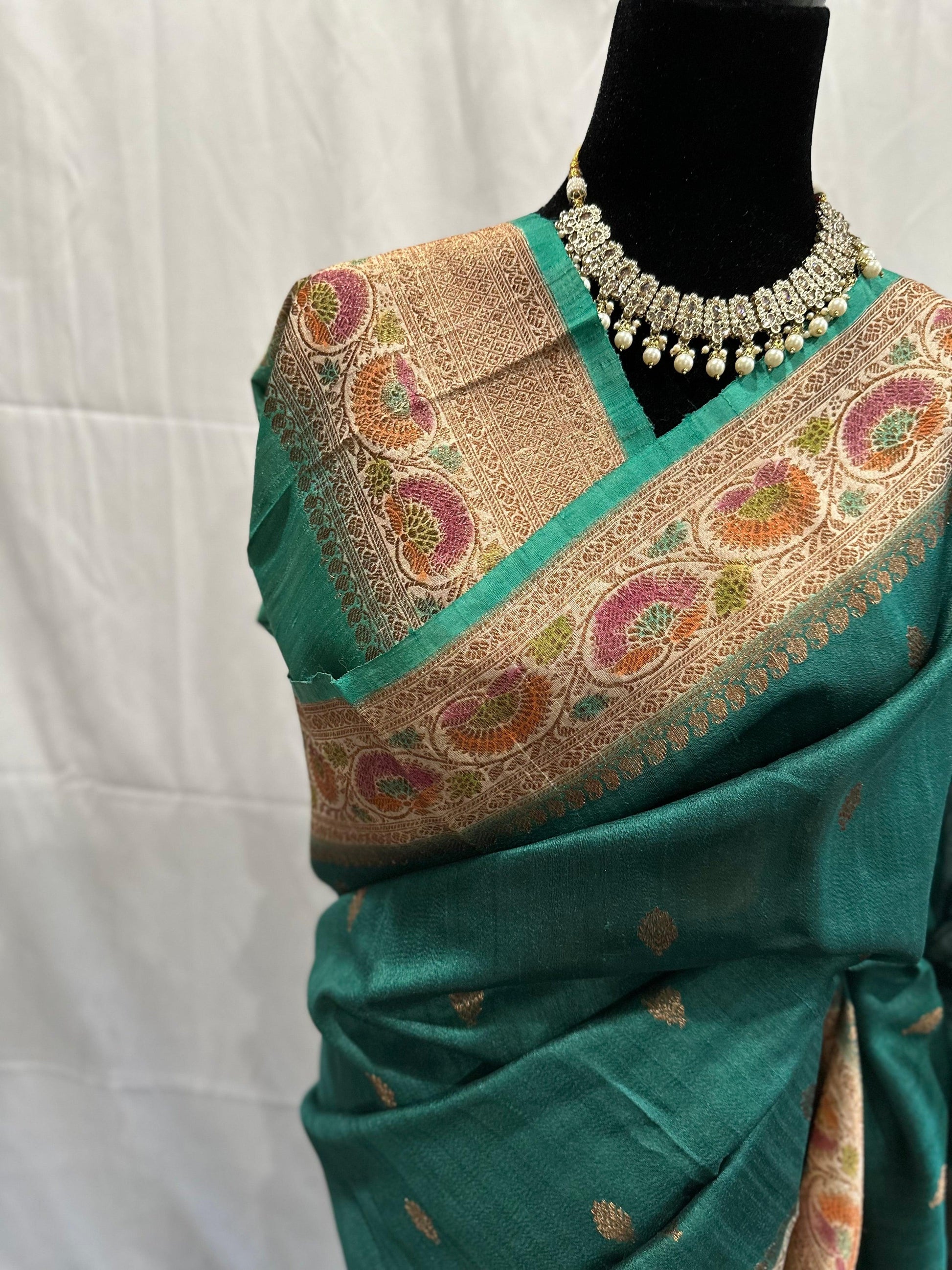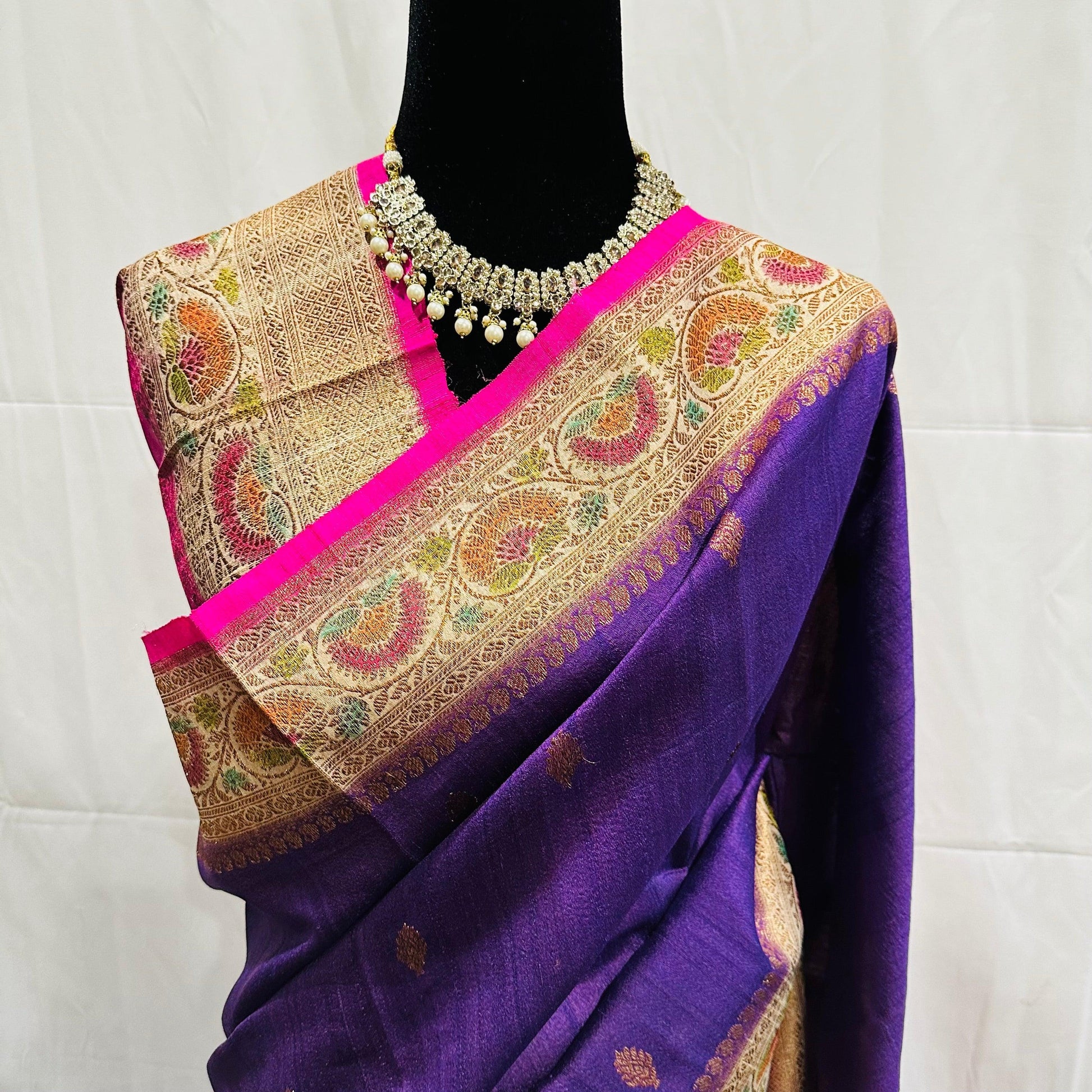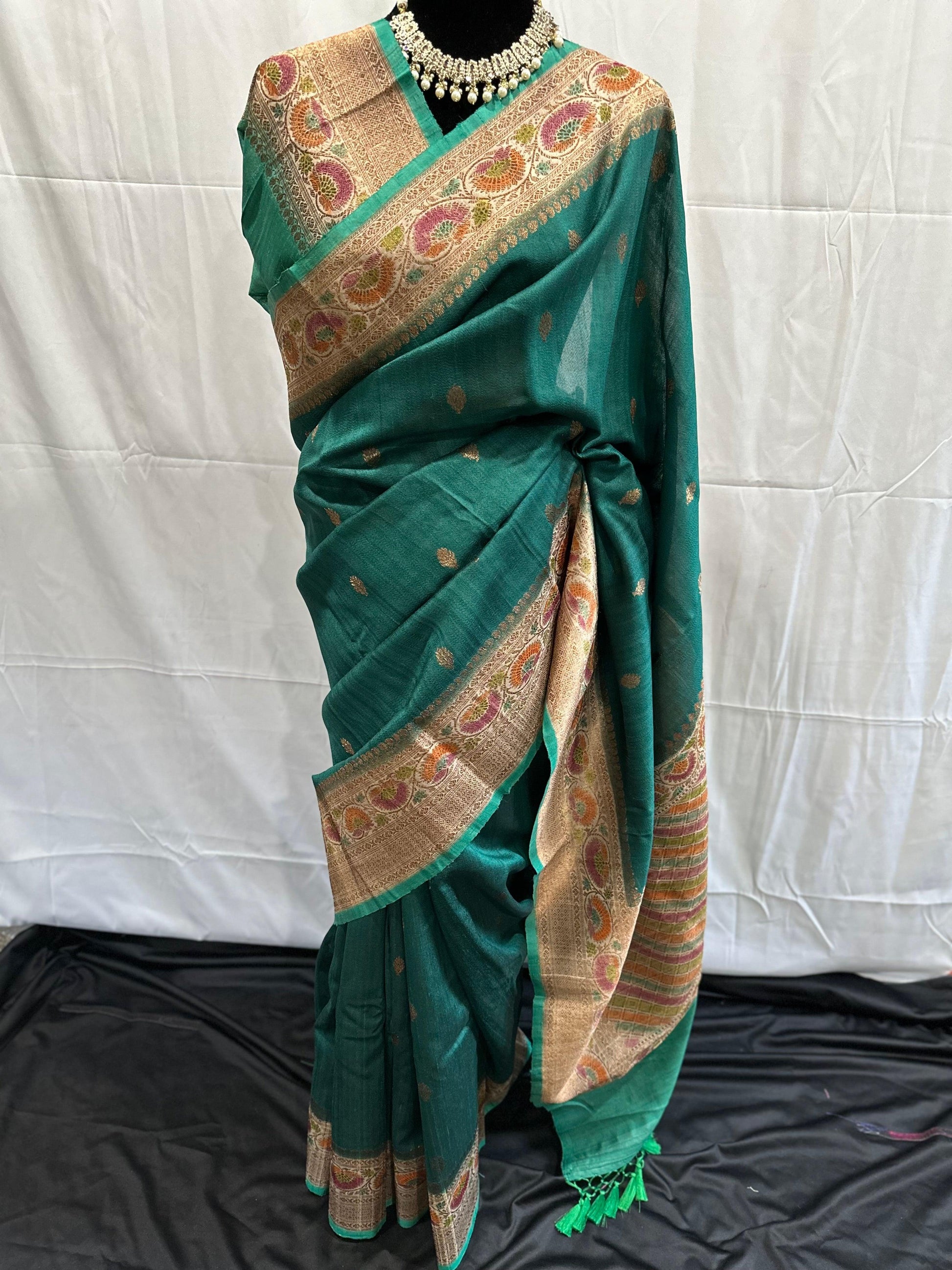 The soft and silky tussar banarasi saree with handbrush is something to cherish and a must every saree enthusiasts closet.