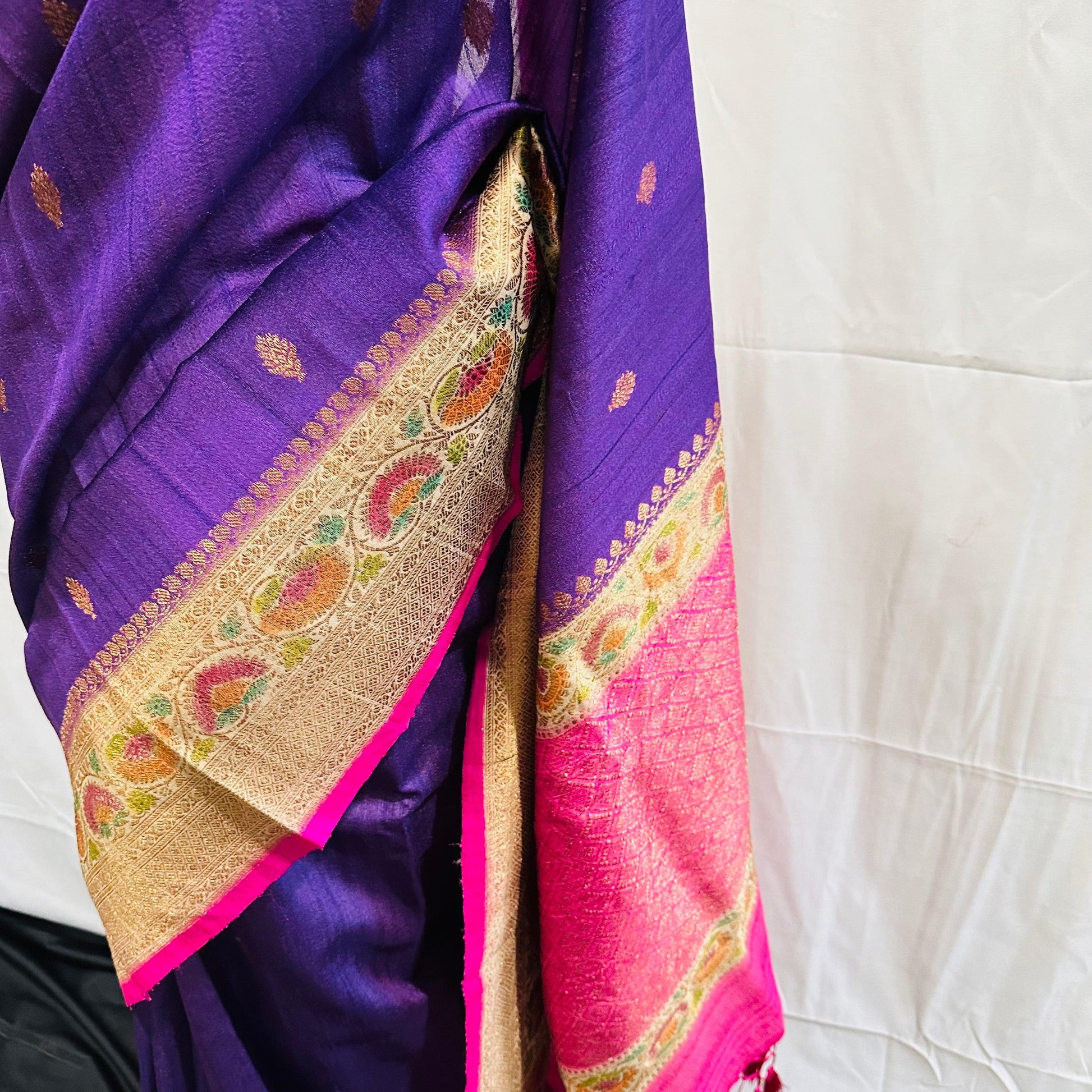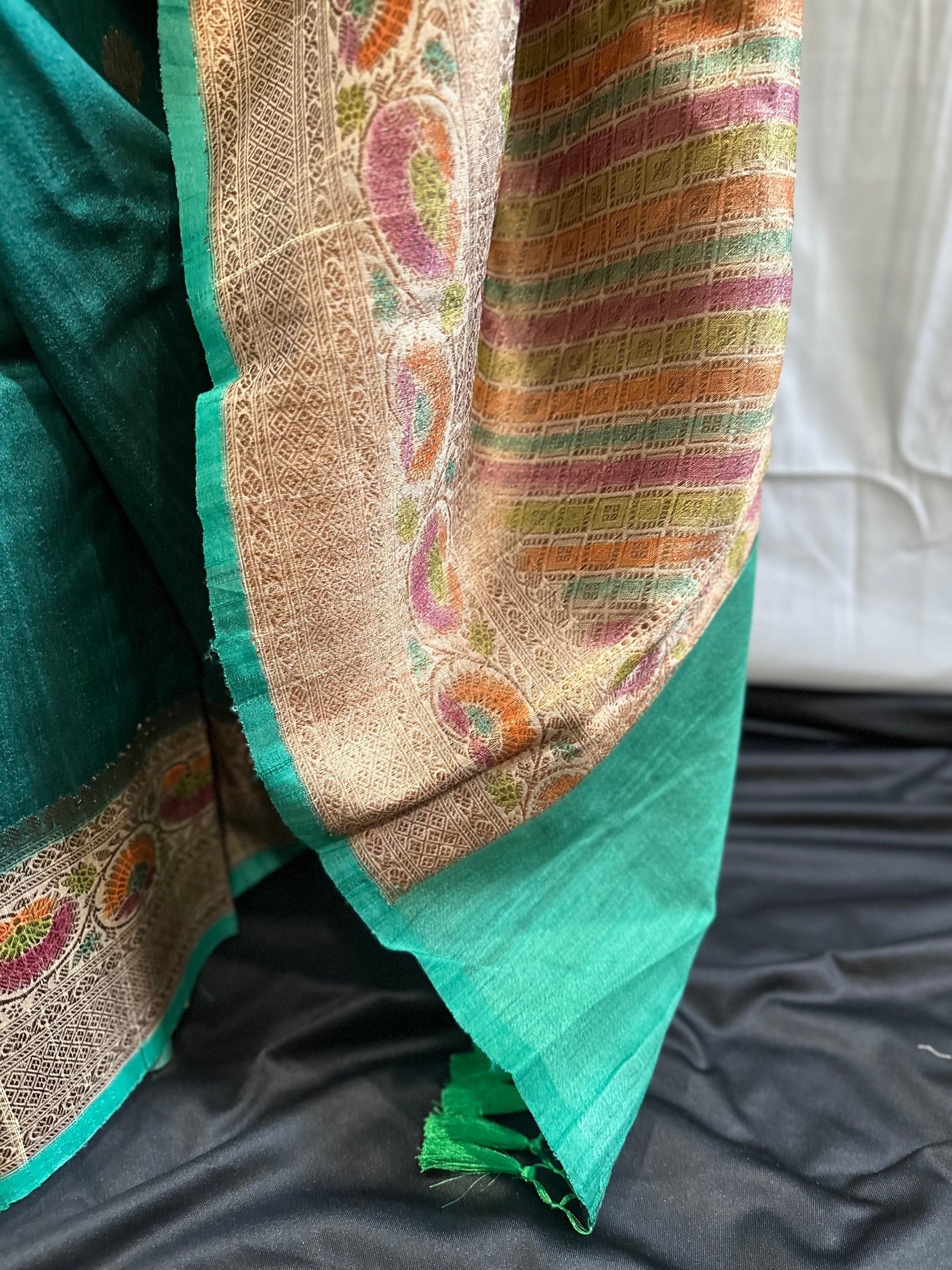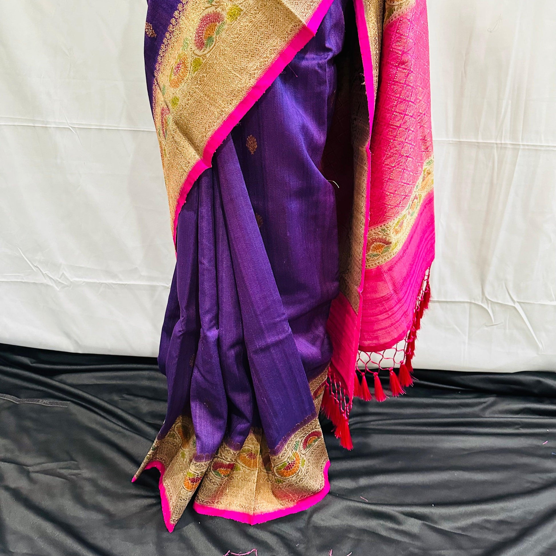 Pure Tussar Banarasi Handwoven Saree with hand brush rangkart