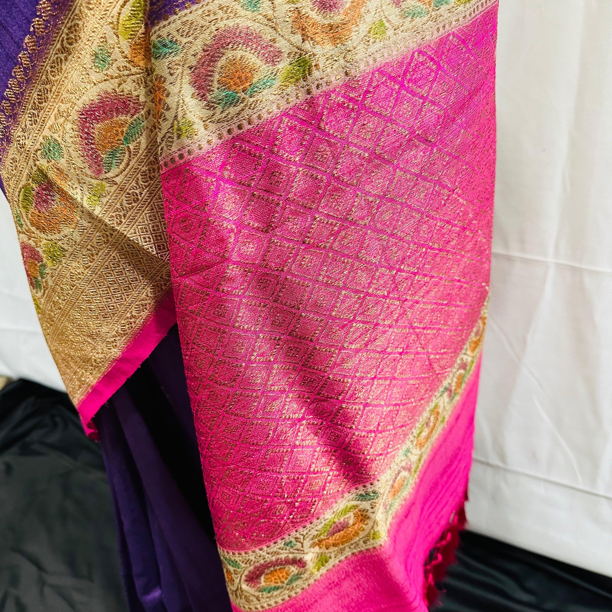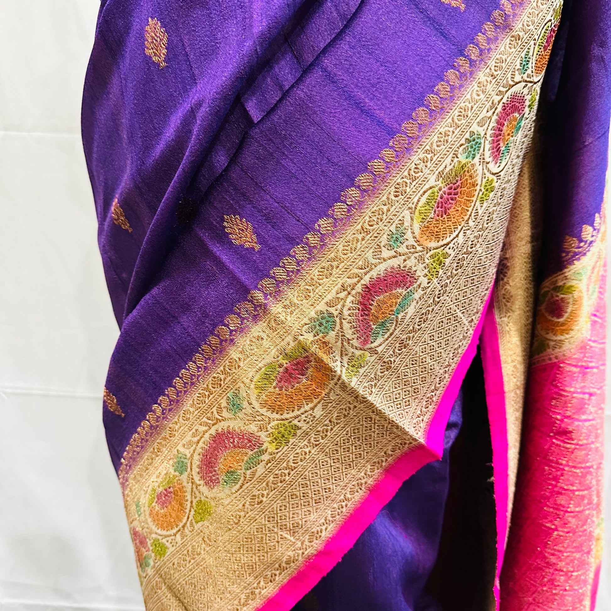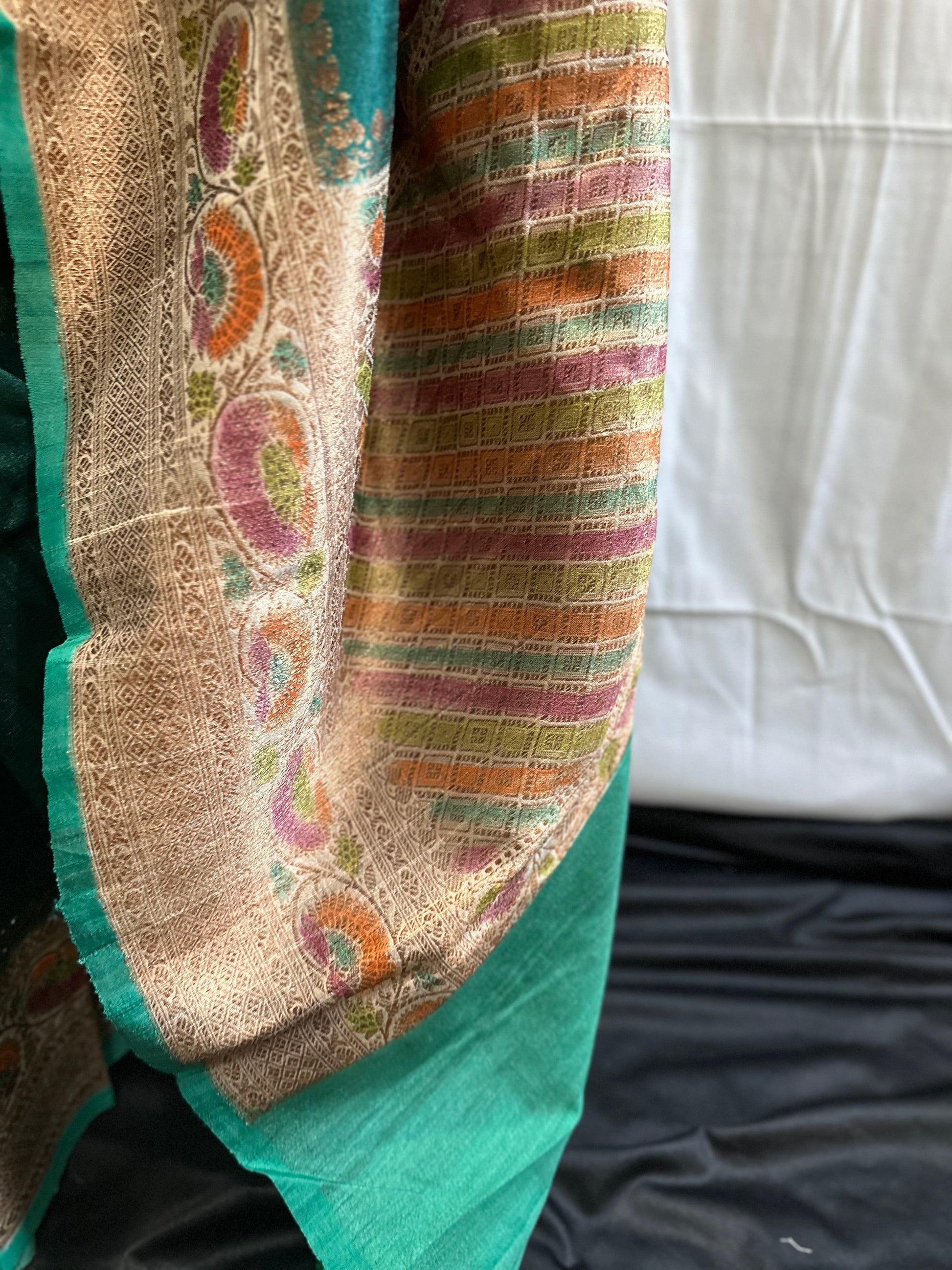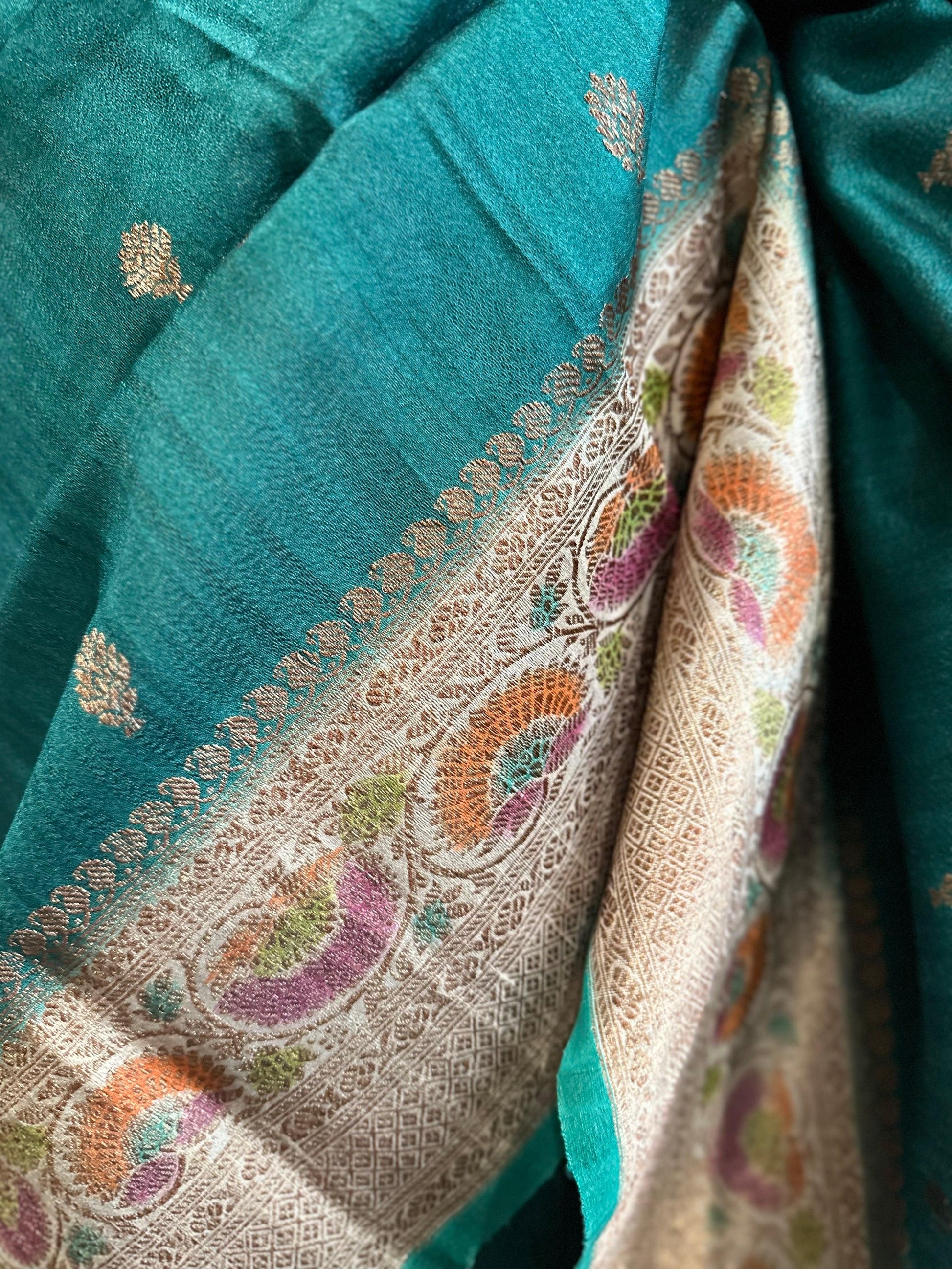 Pure Tussar Banarasi Handwoven Saree with hand brush rangkart