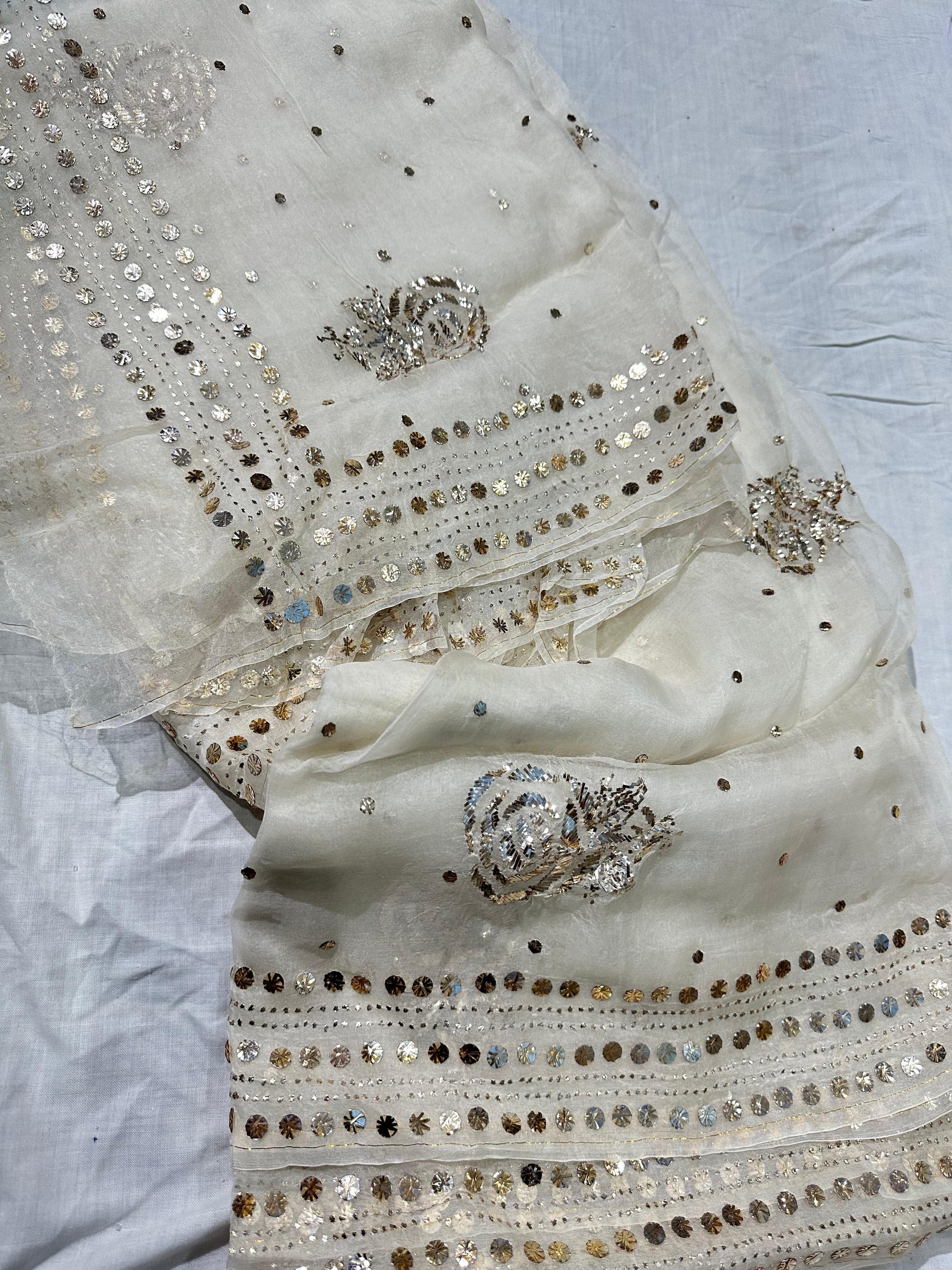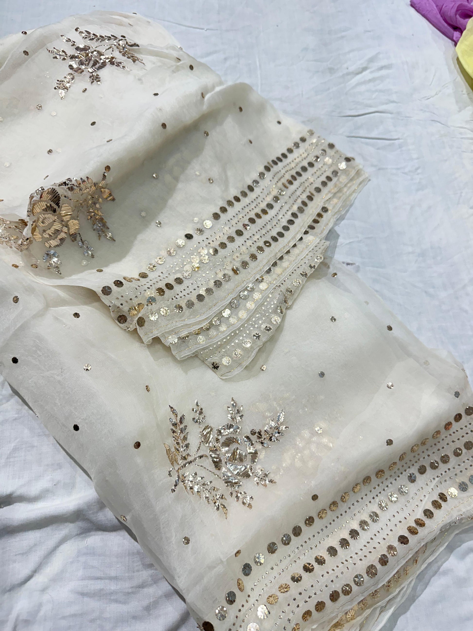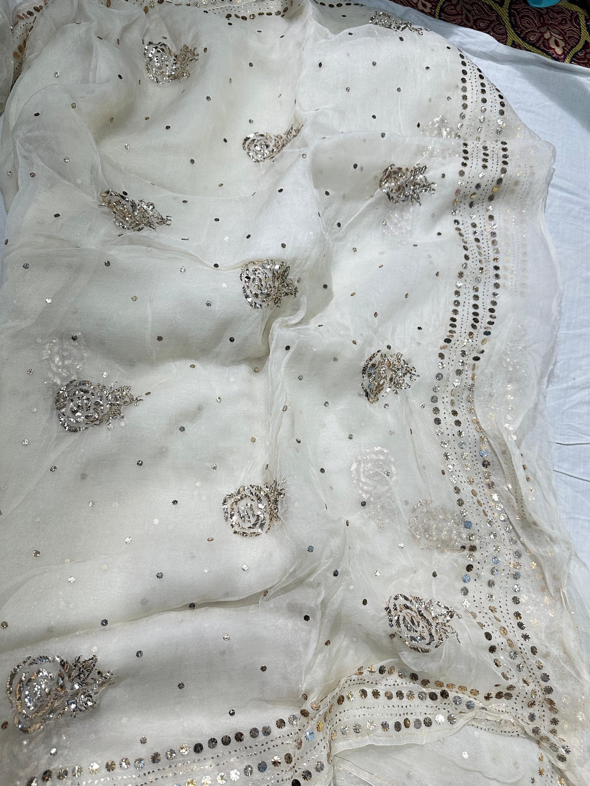 Authentic Hand Lucknowi Chikankari organza saree with Mukesh