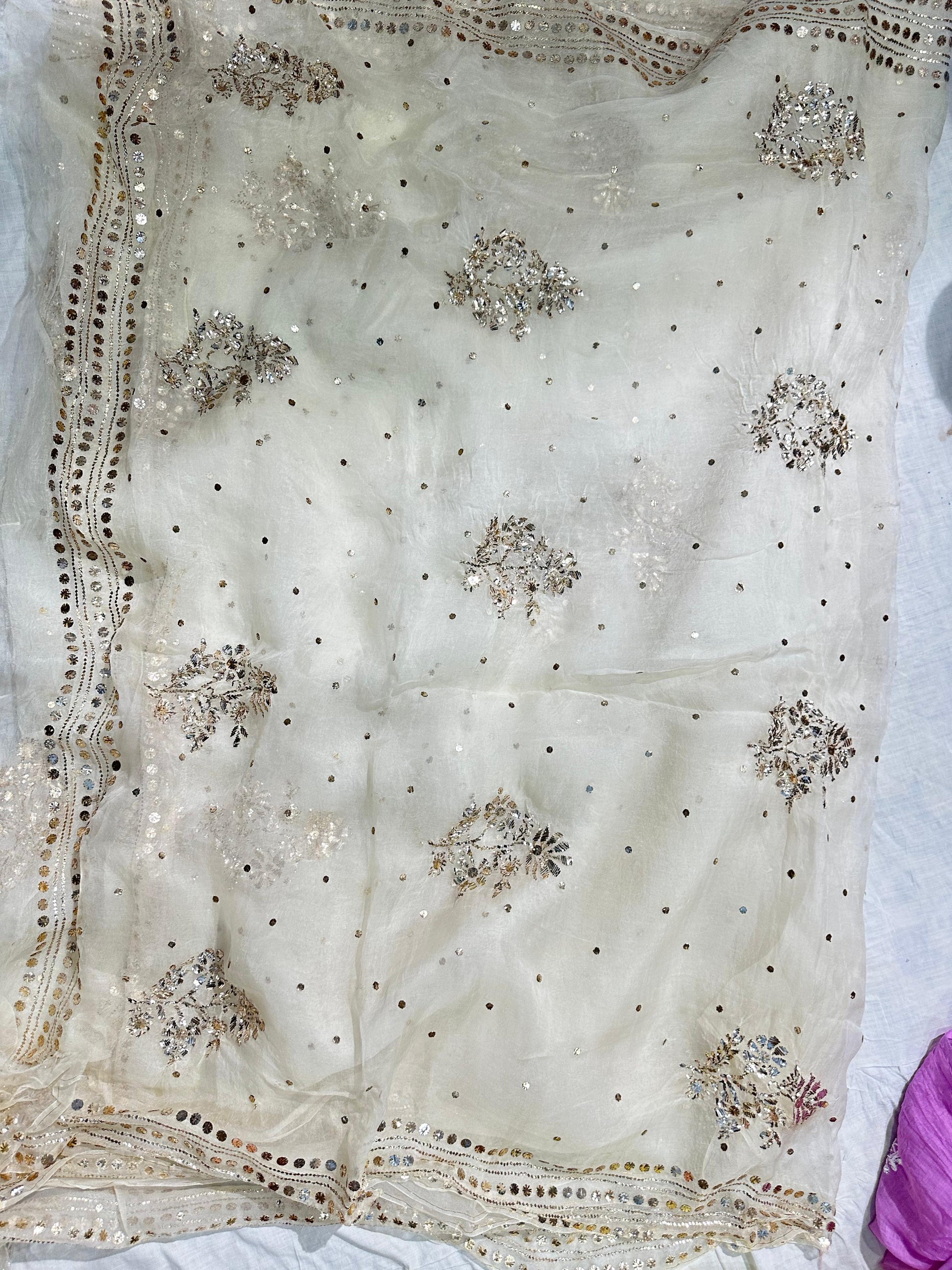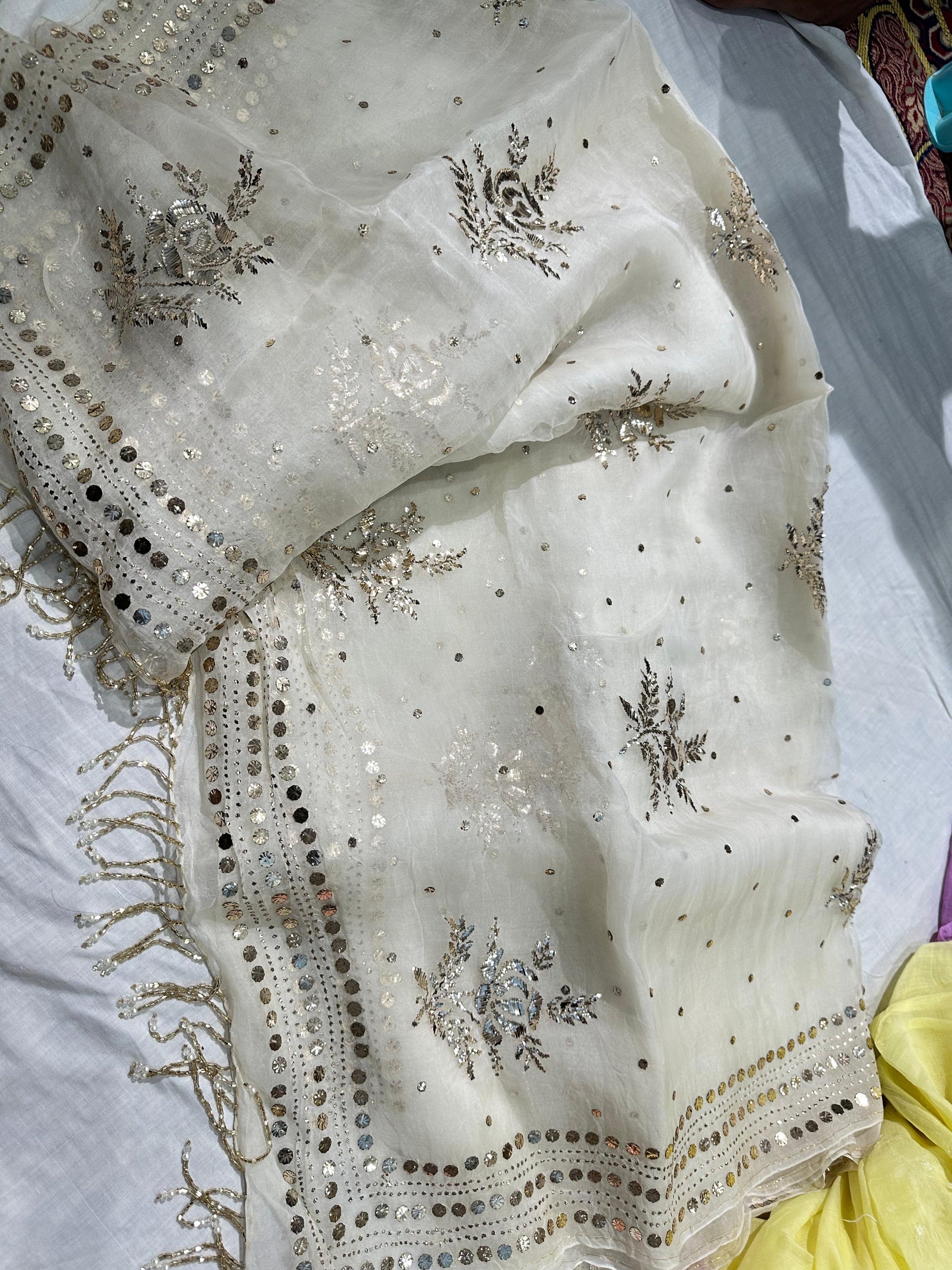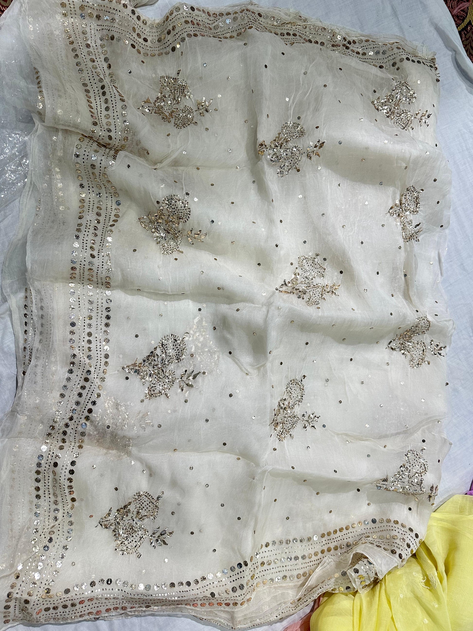 Authentic Hand Lucknowi Chikankari organza saree with Mukesh