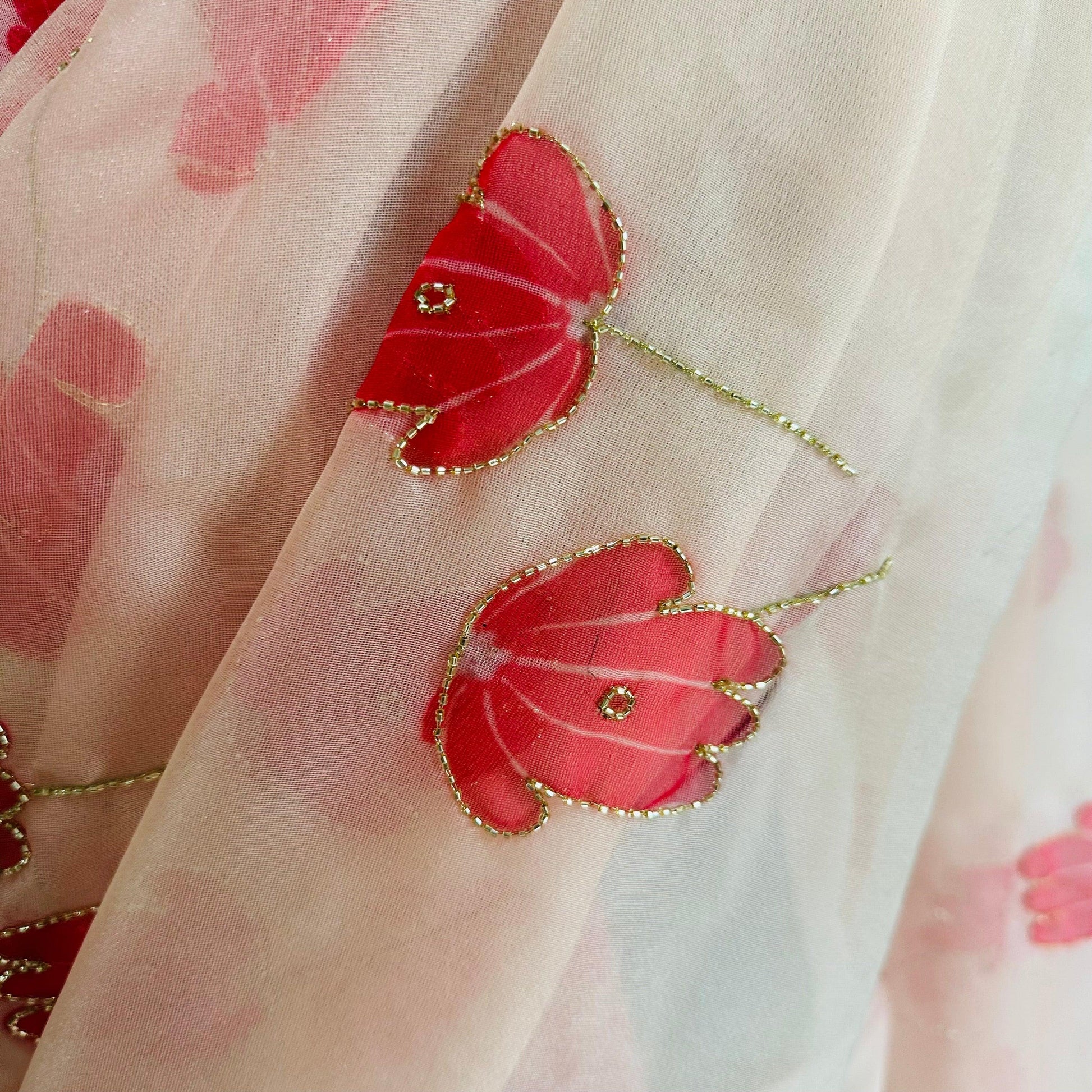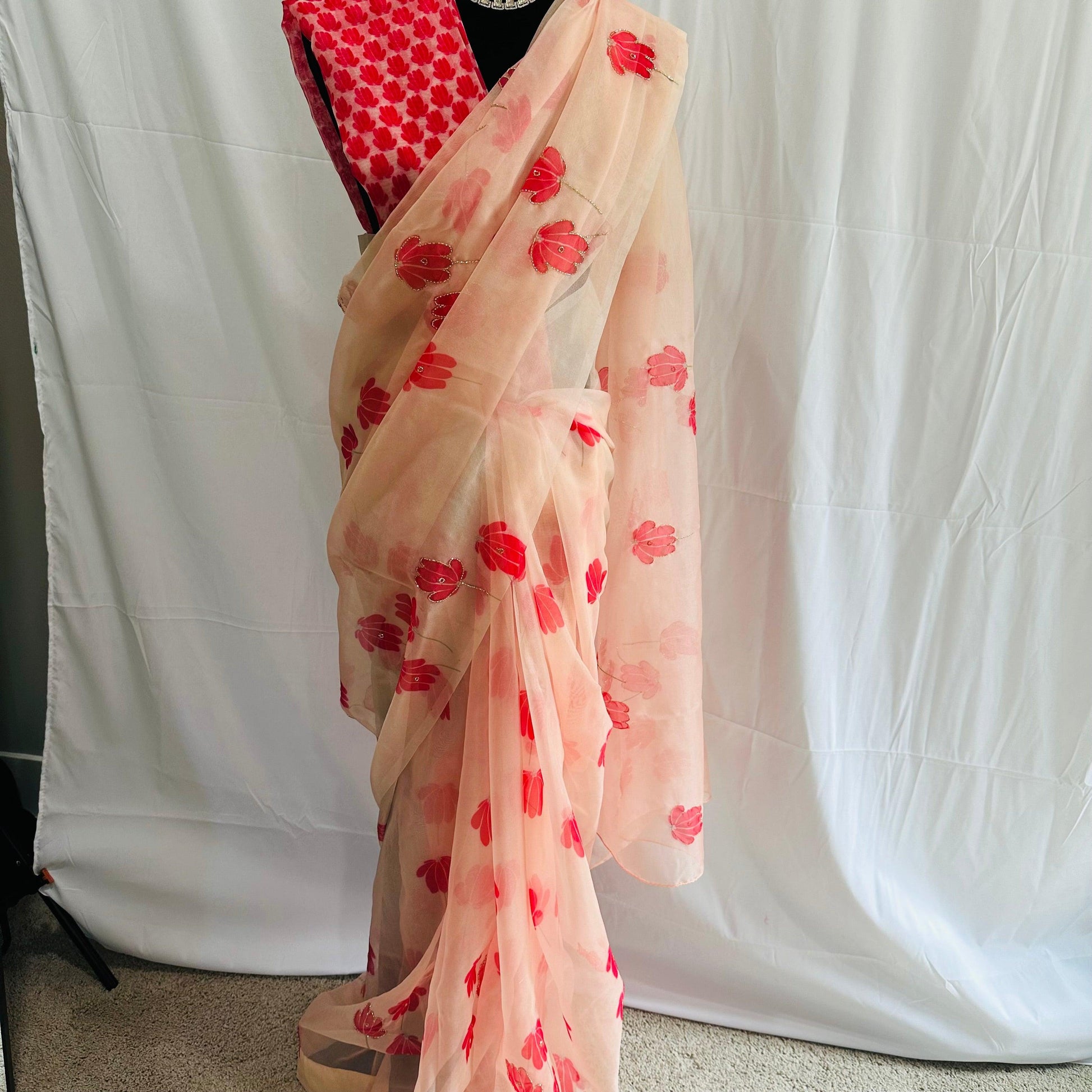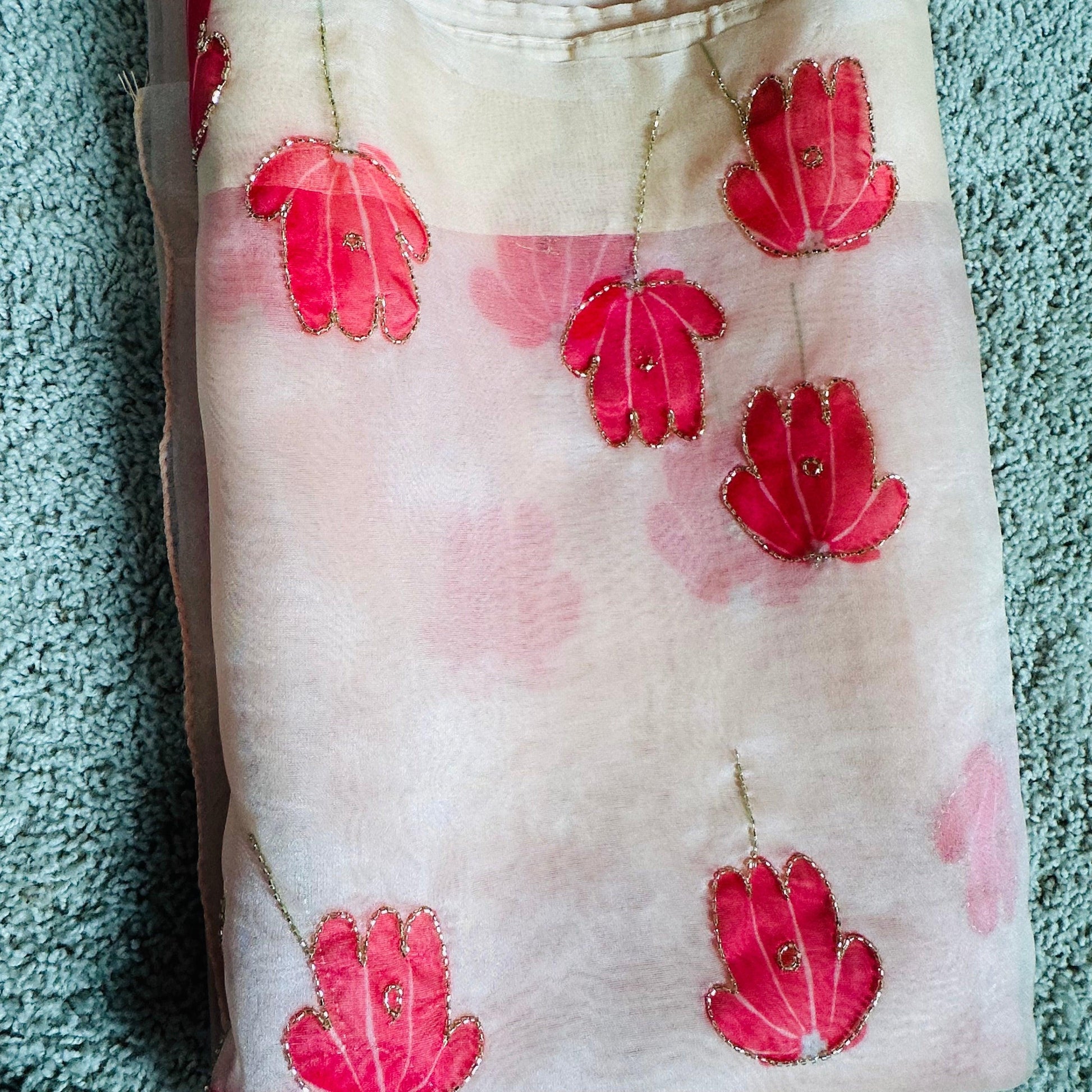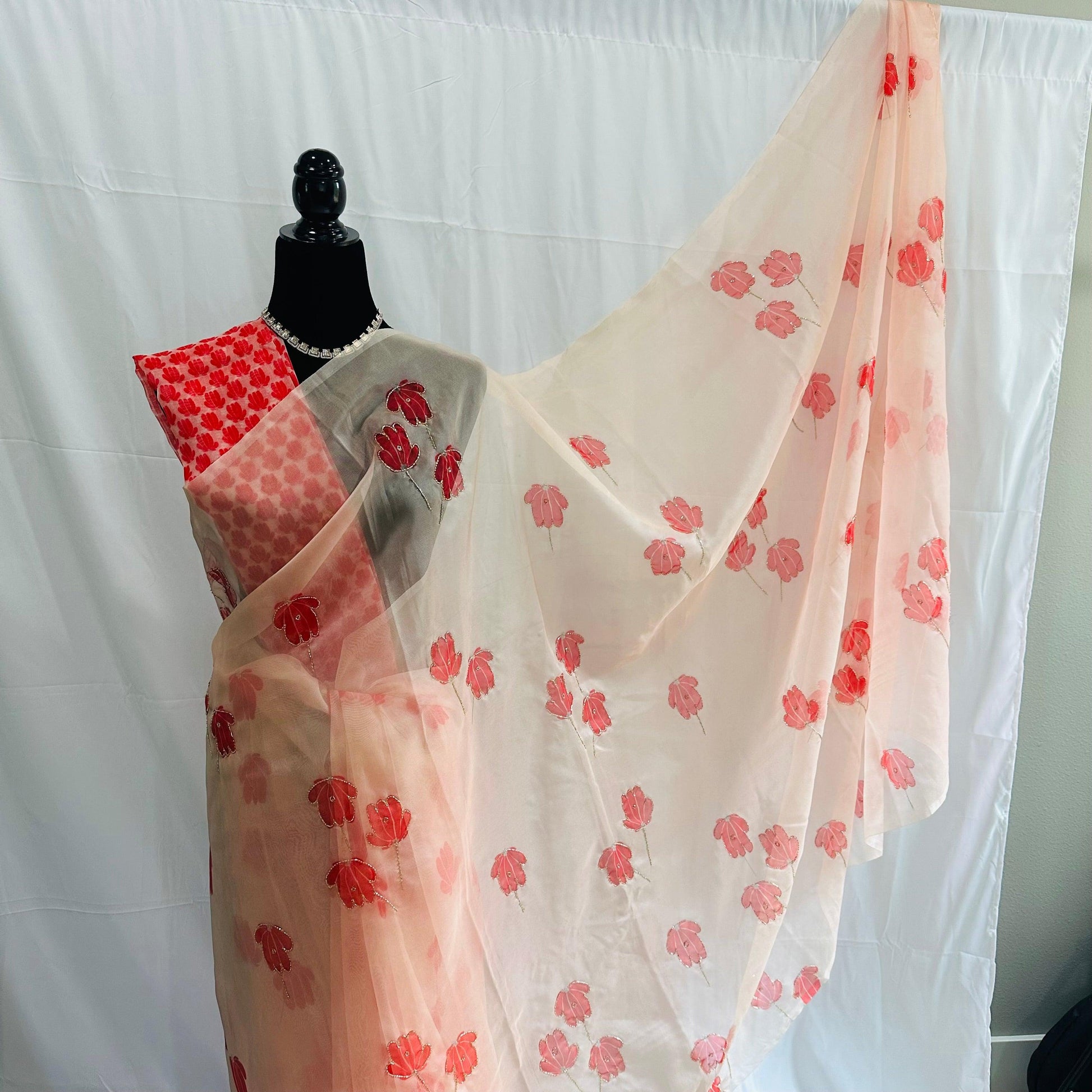 Embrace your inner radiance. Shop The Chic Tale Organza Saree with CutDana Handwork today!