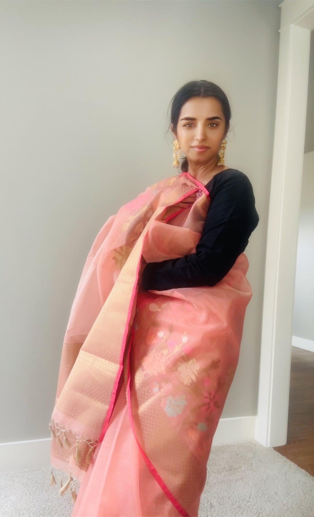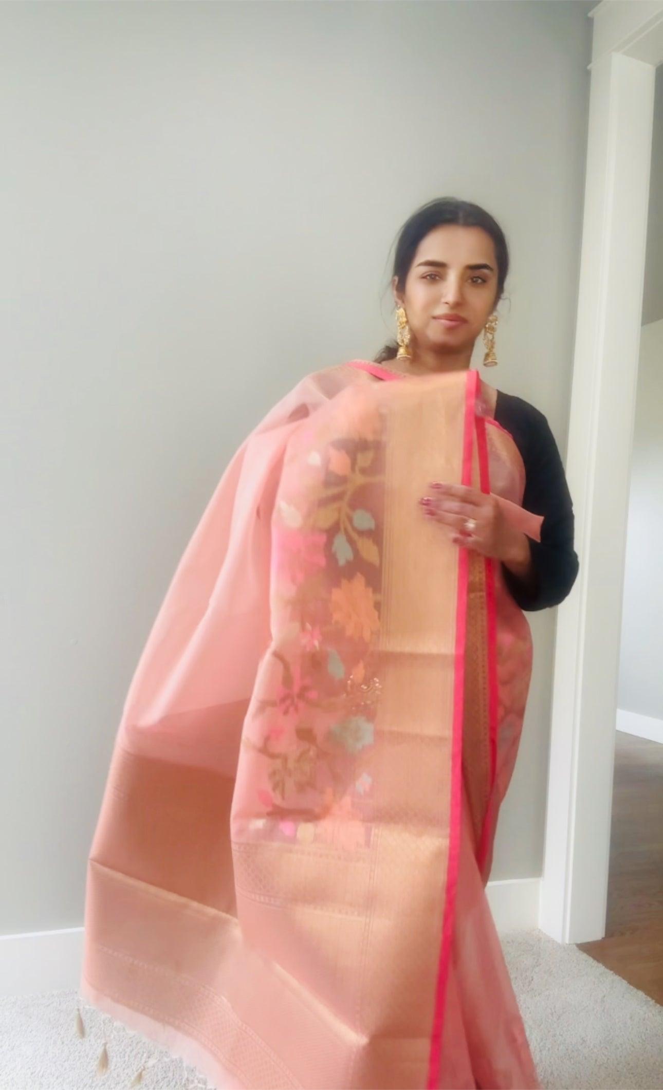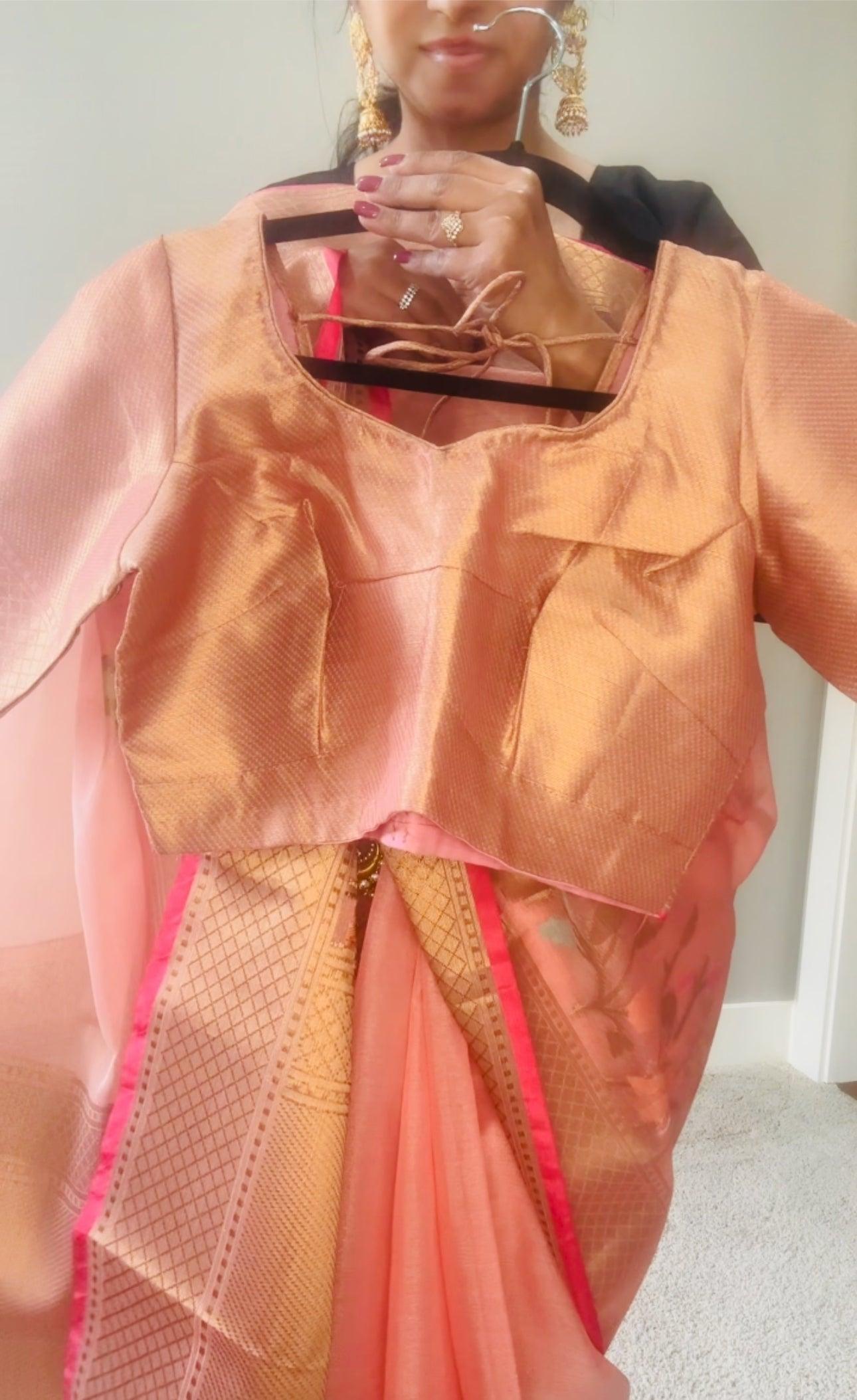 Banarasi Tissue Silk Saree with Skirt Border and sticthed blouse
