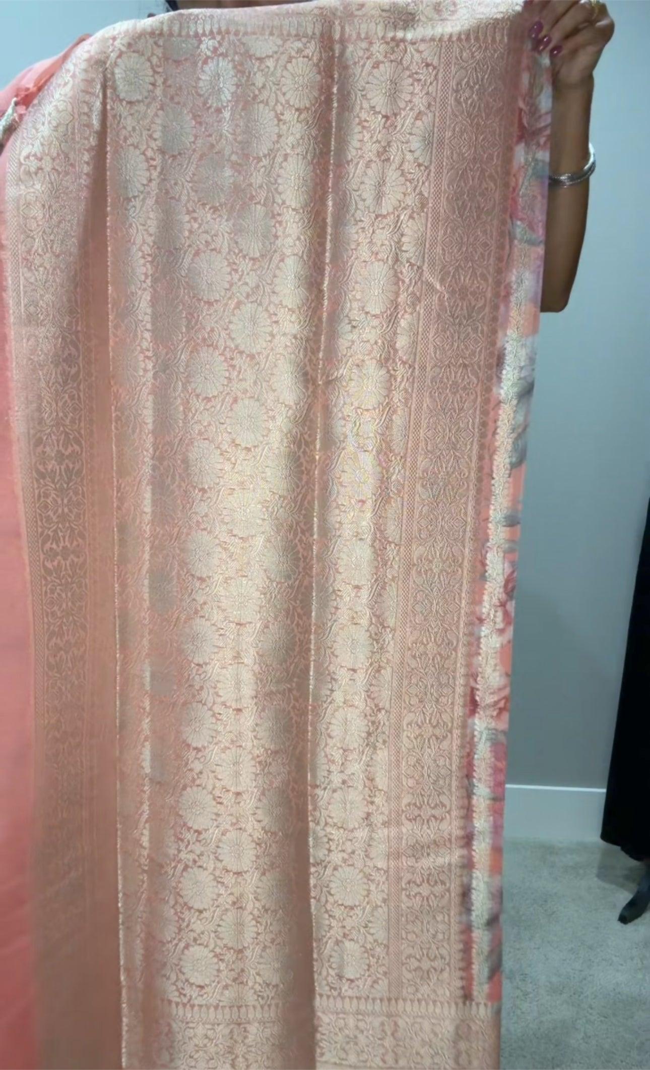 Banarsi Georgette Leheriya Saree - Peach with digital print