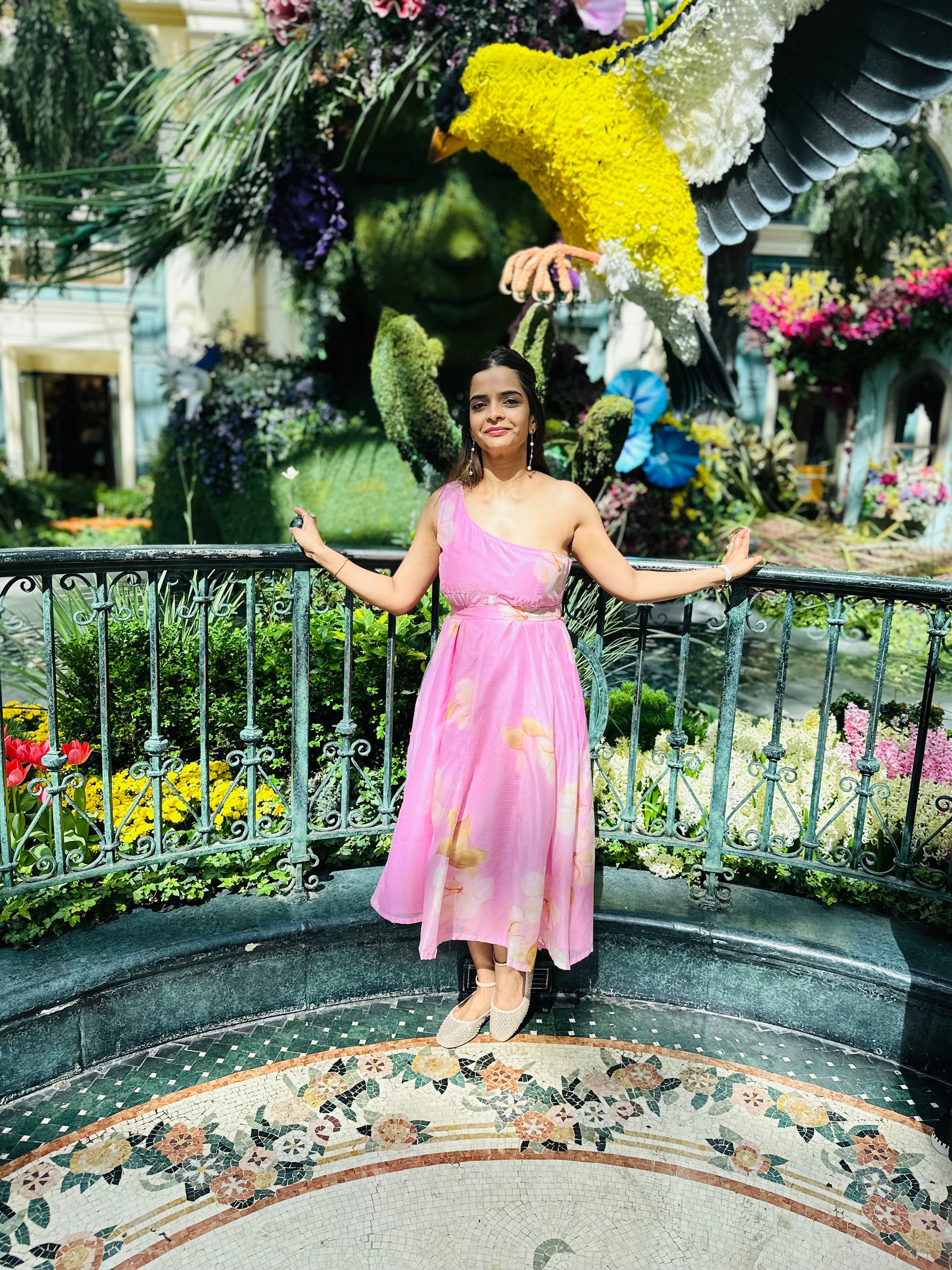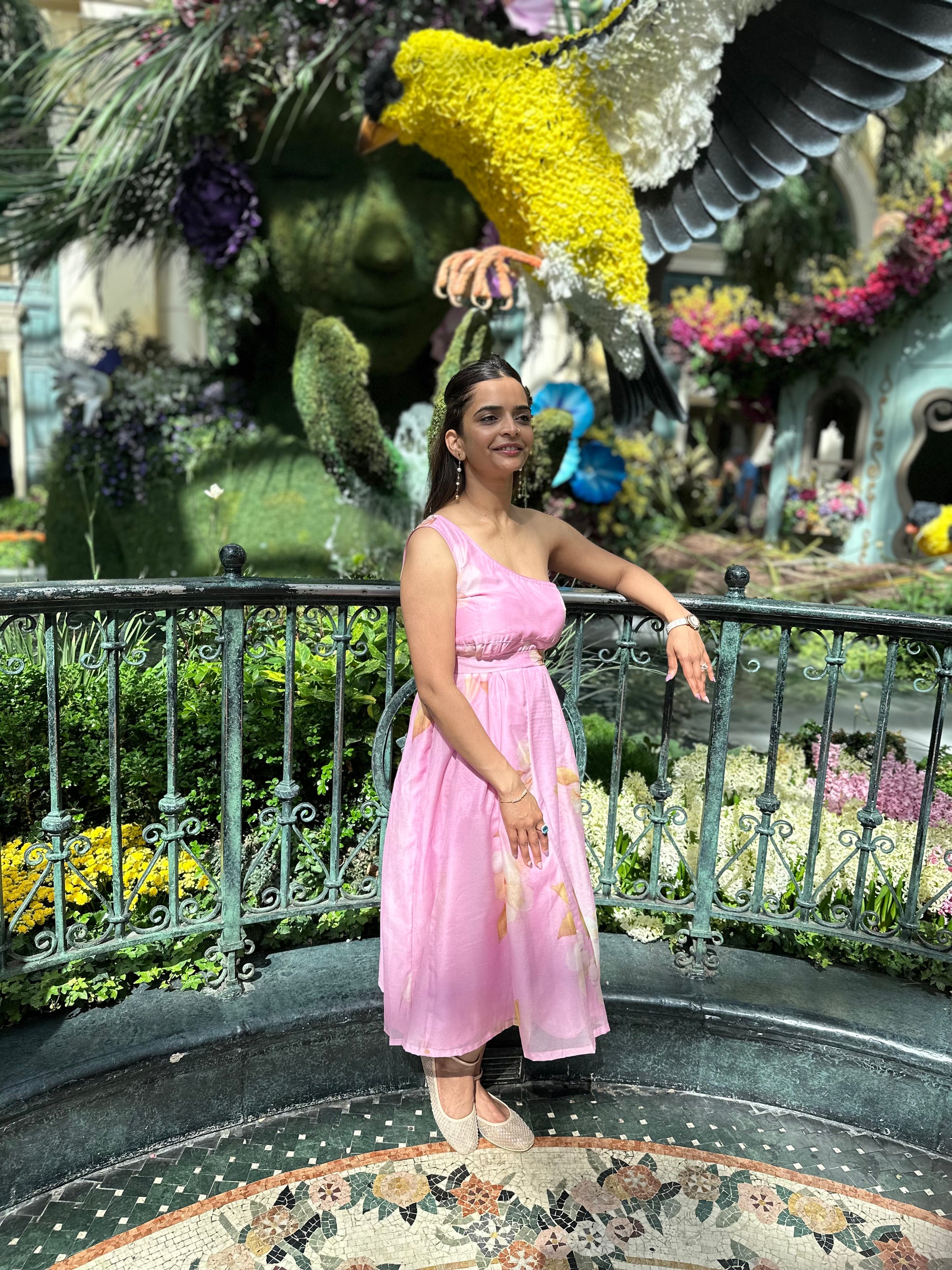 A romantic one-shoulder midi dress in sheer floral organza-chiffon, softly lined and tailored for movement. Feminine, floaty, and perfect for warm evenings. out.