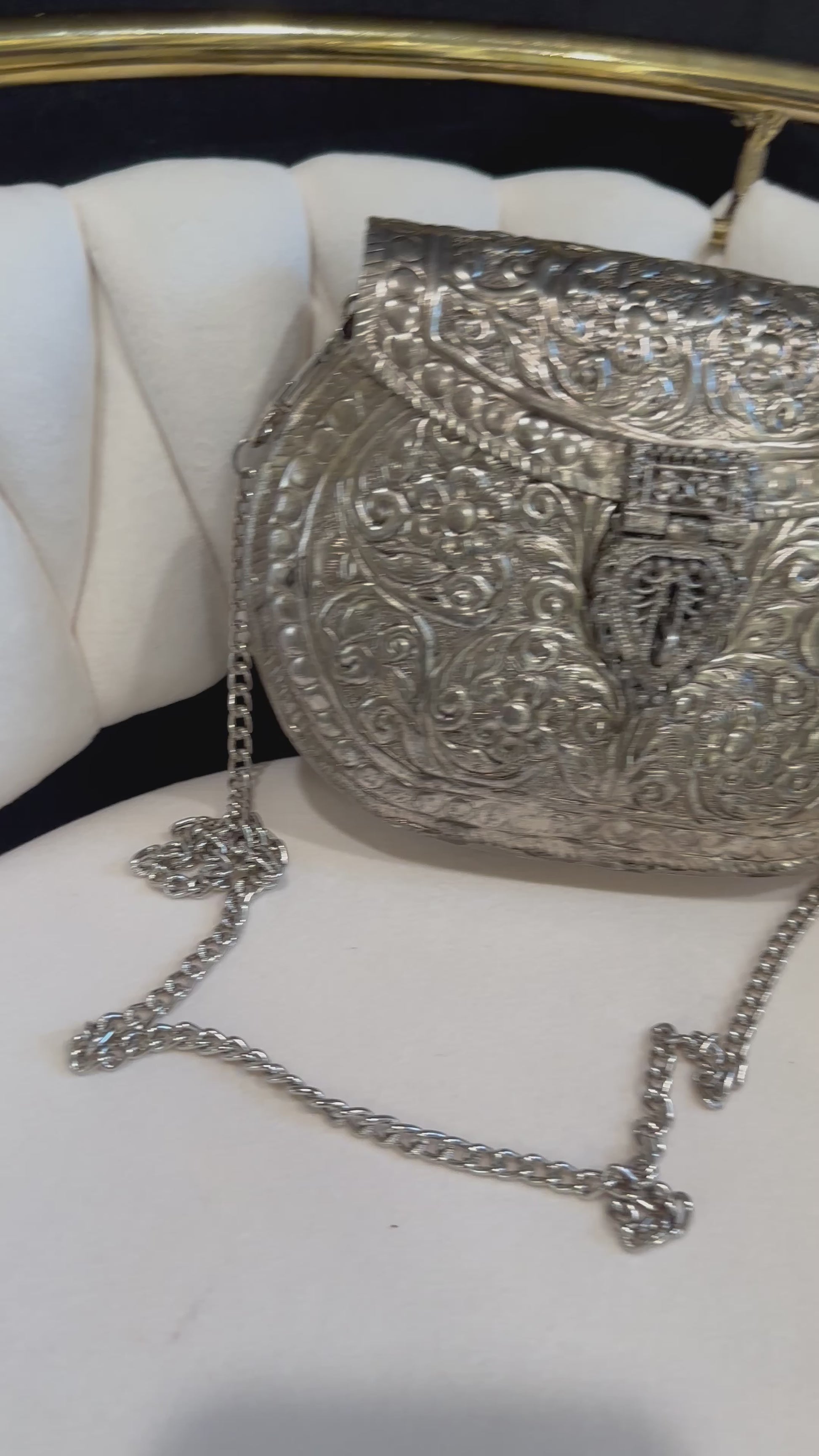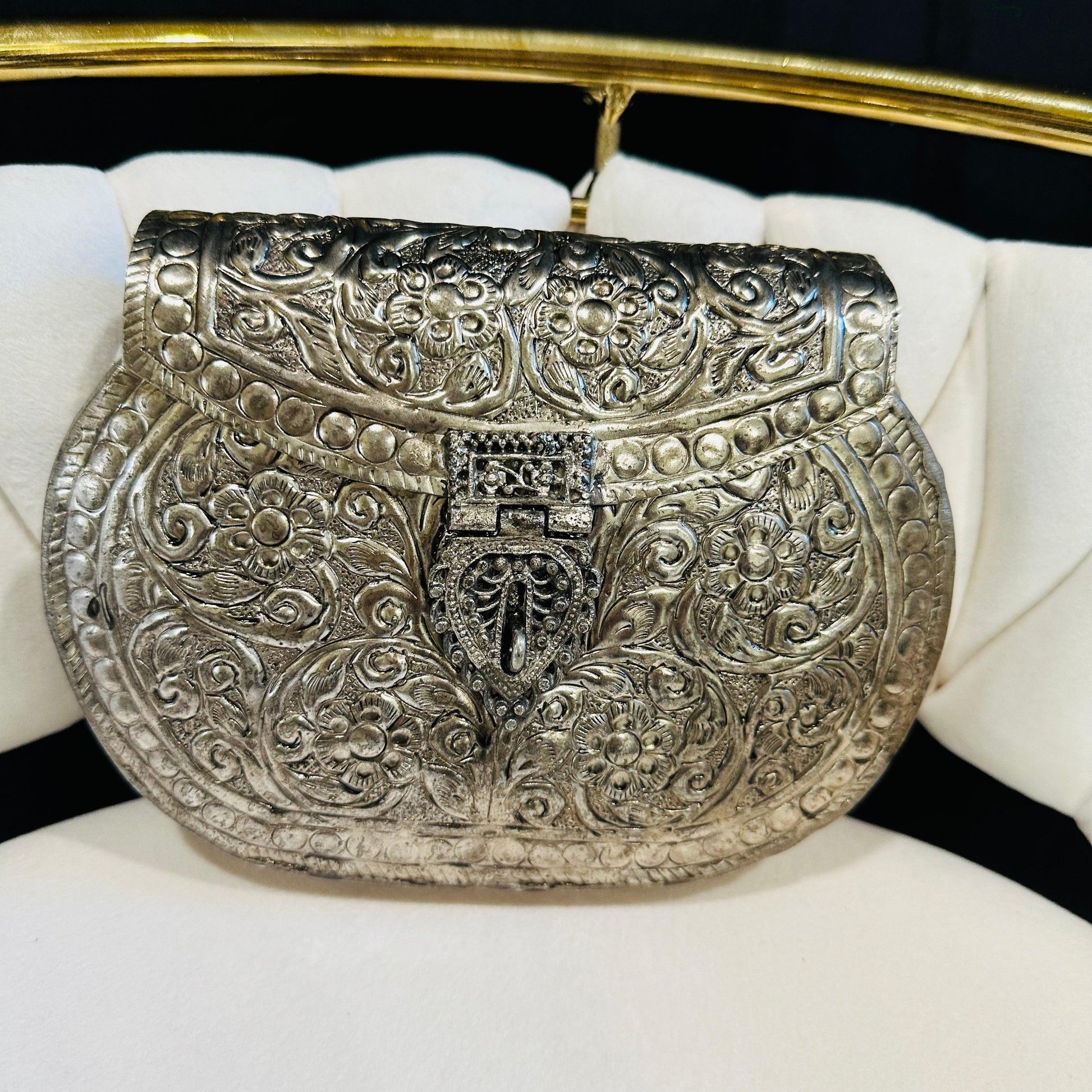 This handcrafted metal clutch is the perfect statement piece for any occasion, from a night out on the town to a wedding.