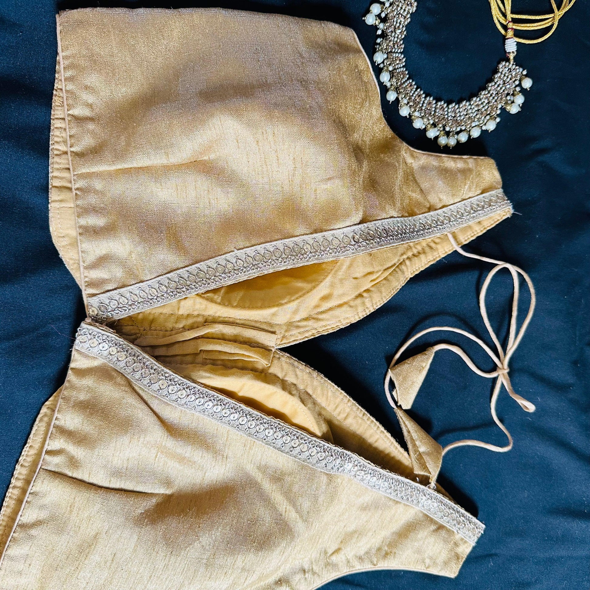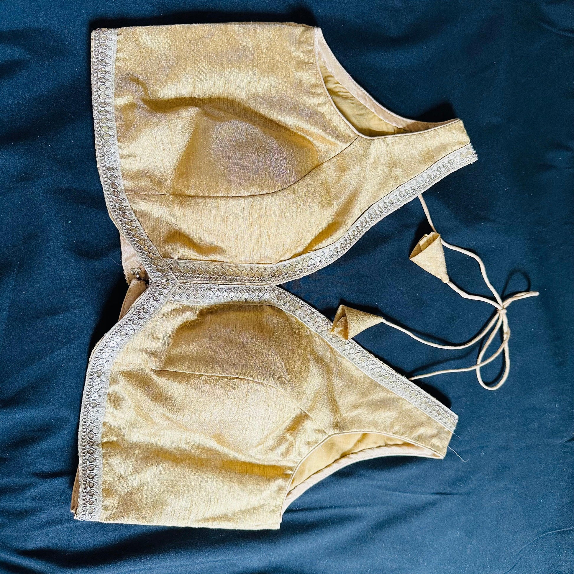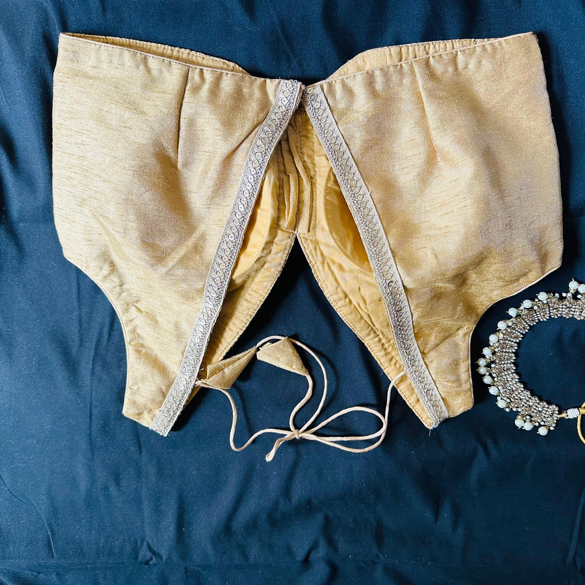 Deep V neck Ivory / Beige Blouse- Raw Silk - Padded