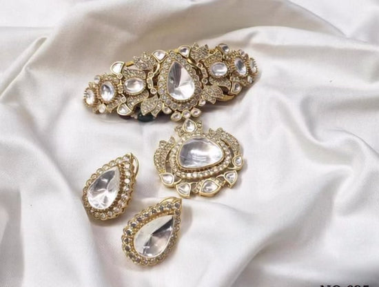 - Technique: Traditional Kundan setting with micro stone detailing