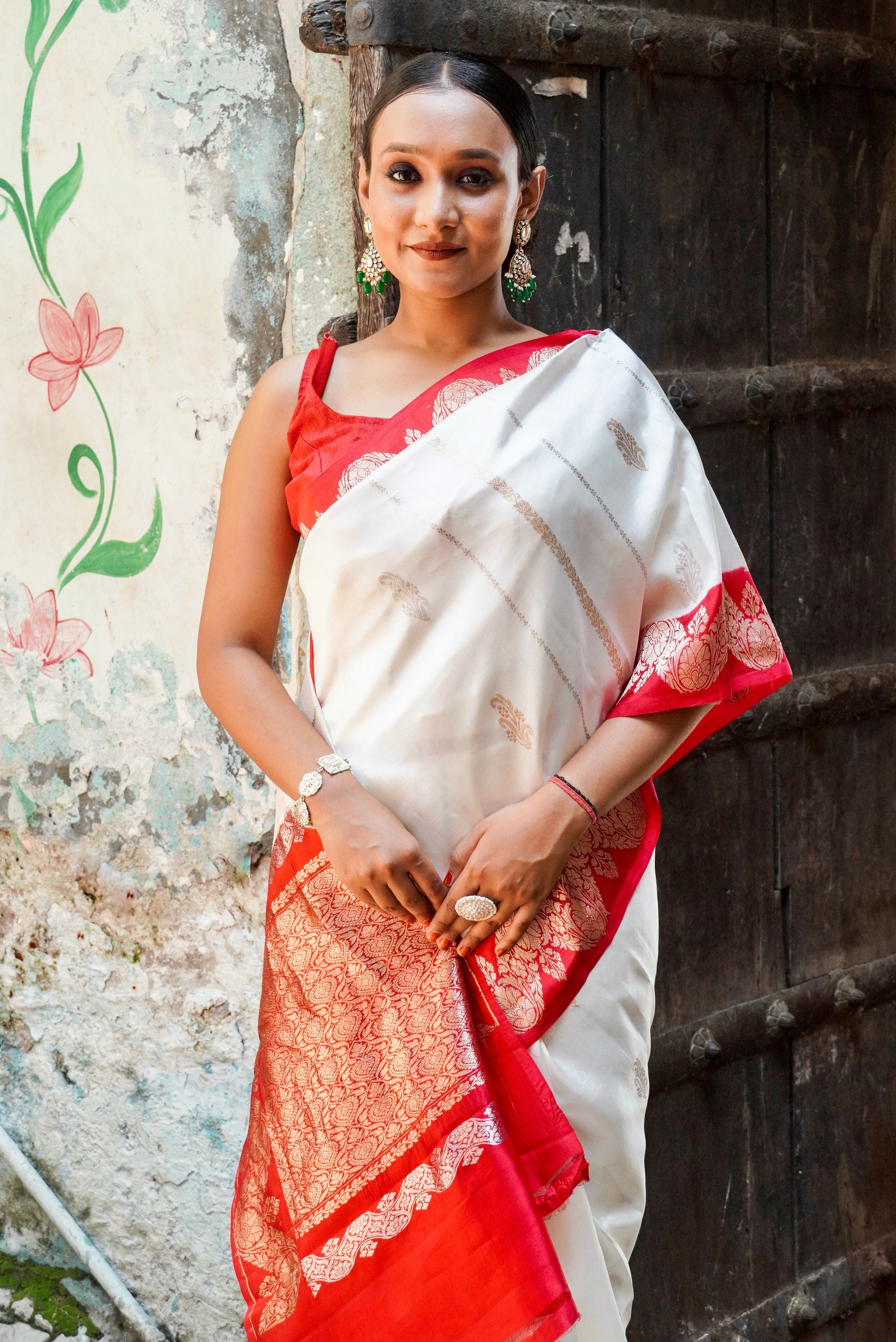 Durga Pooja soecial Banarasi Pure Katan by Mashru Silk Handwoven Saree - Sona Rupa - Kaduwa