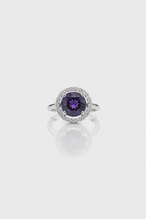 Meet the Aura Ring — a timeless halo design crafted to bring elegance into your everyday. Featuring a brilliant center gemstone available in Red, Green, Violet/Purple, and Crystal Clear, each ring radiates with a luminous glow that catches the light beautifully from every angle.