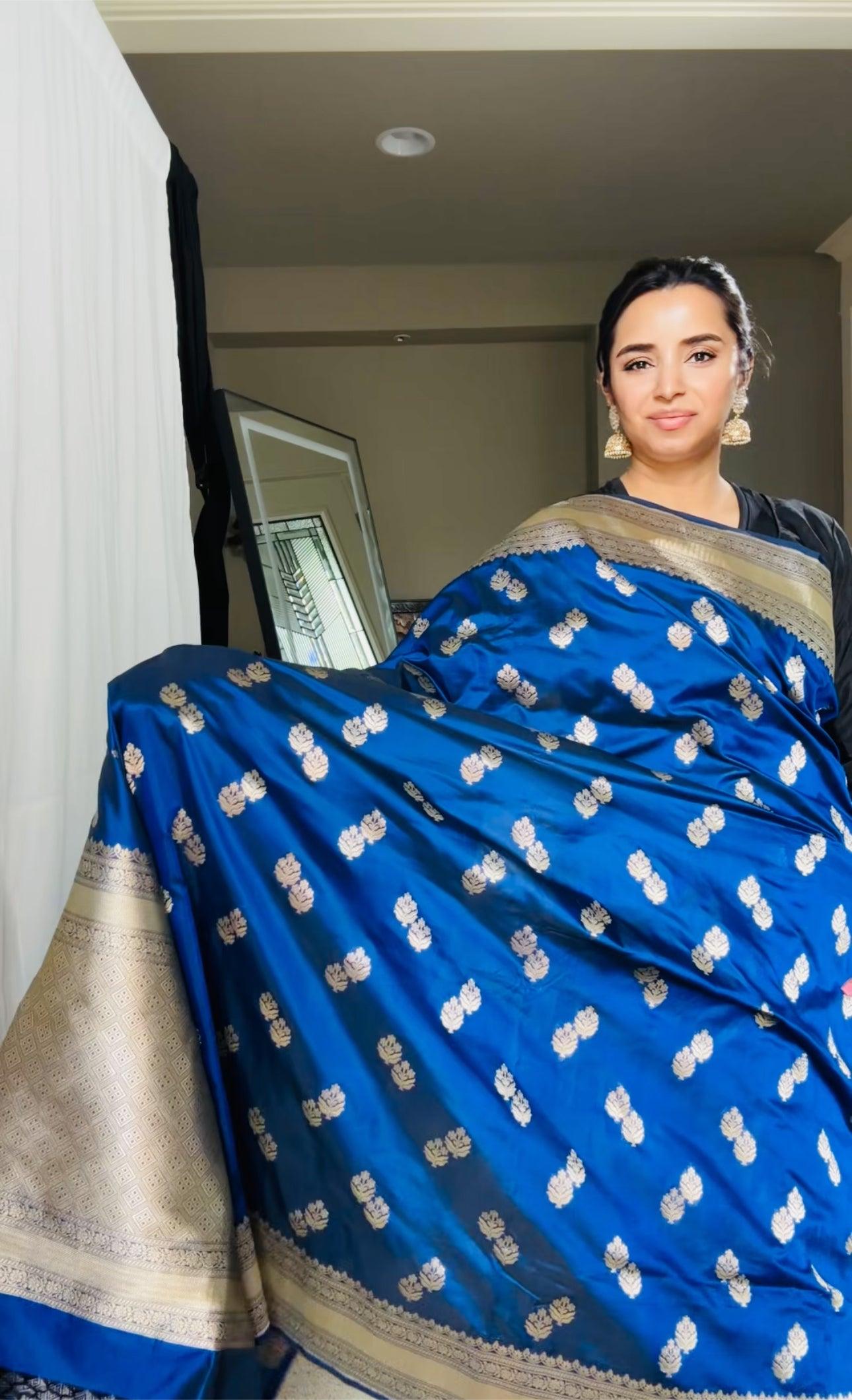 Exquisite Blue Handwoven Katan Silk Saree with Gold Zari Silk Mark Saree with blouse