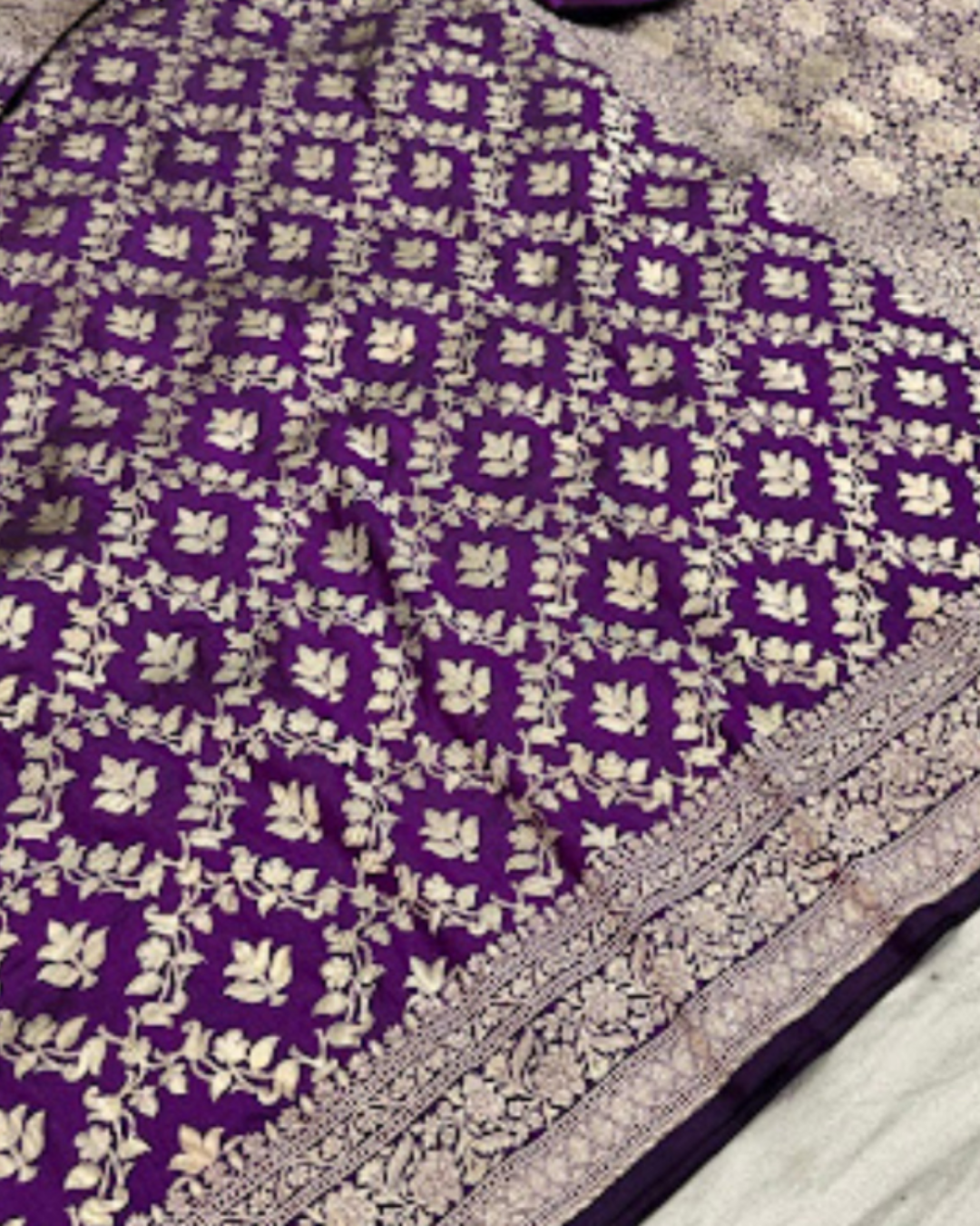 Exquisite Jaal Handwoven Katan Silk Saree with Gold Zari Silk Mark Saree with blouse