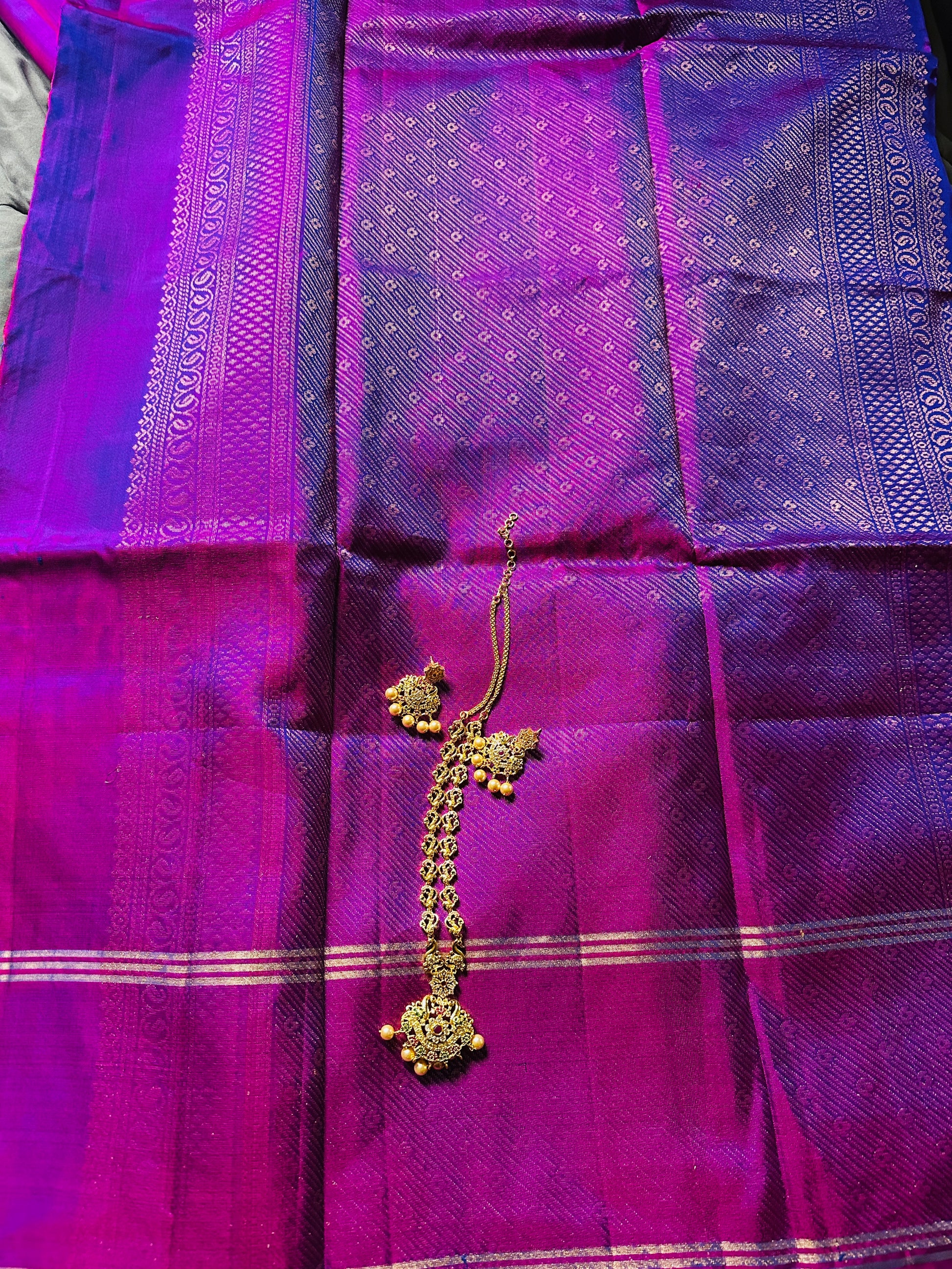 🪡 Weave: Handwoven by master artisans of Kanchipuram💫 Certification: Silk Mark Certified