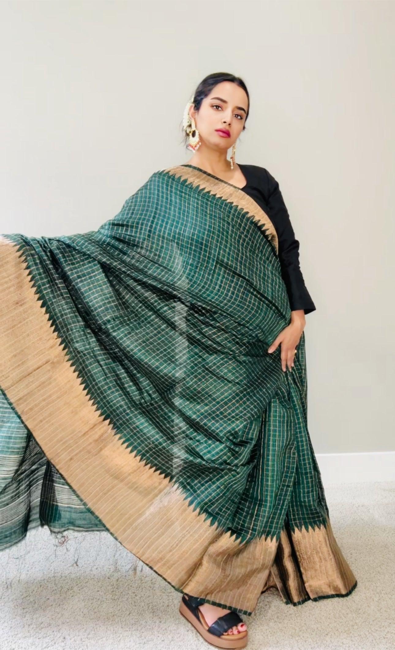 Bringing these beautiful pure matka silk sarees... inspired by Kanjeevaram checks these come with a glamorous almost 15 inch bottom border...