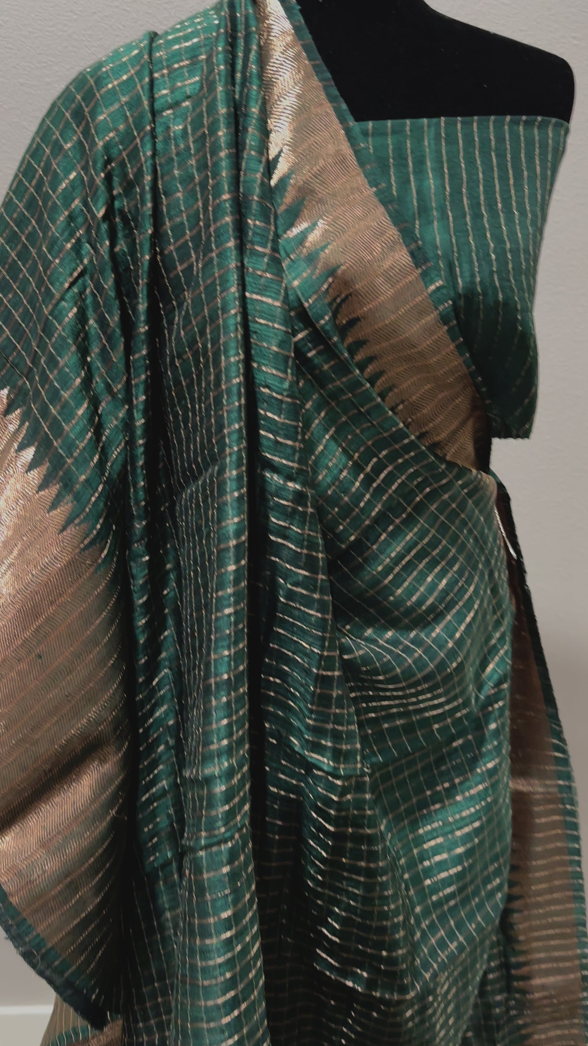 Kanjeewaram Check Saree large border on pure Matka Silk - Green