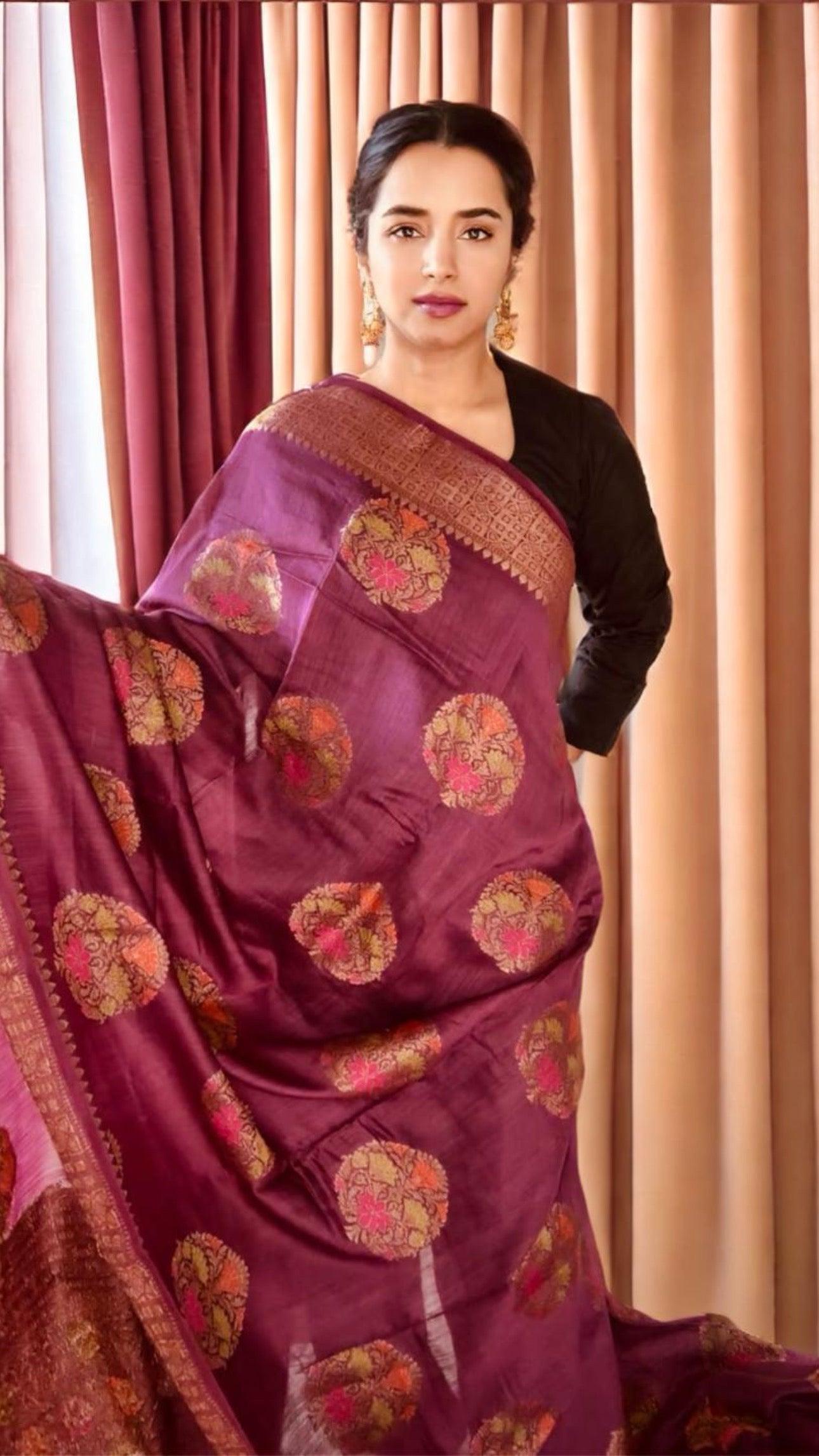 Large bootas filled with meenakari weaving adorn the entire body of the saree....