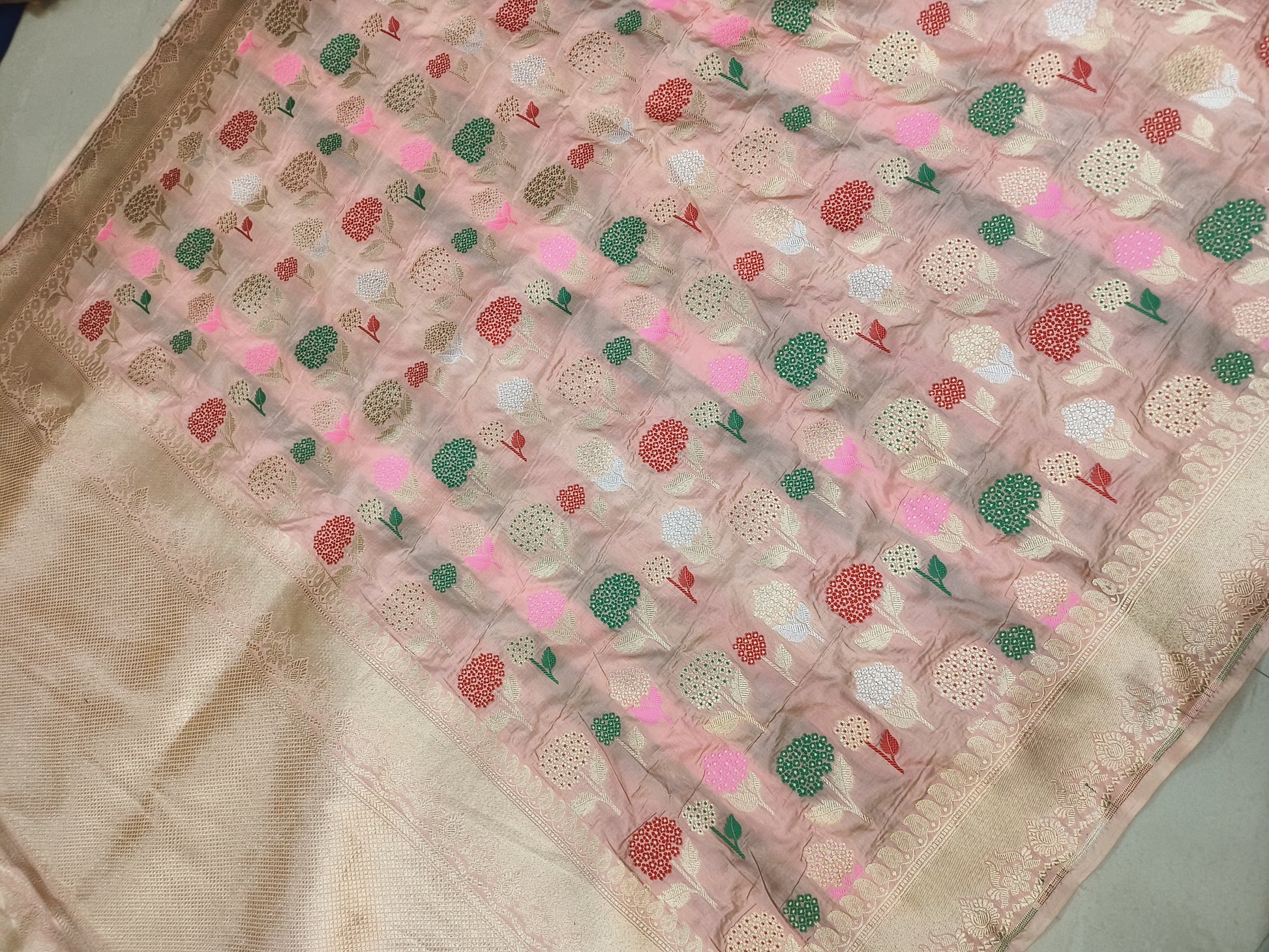 Nita Ambani Wabes look Inspired Pure Katan Handwoven Banarasi Saree with Silk Mark - Jaal - Meenakari
