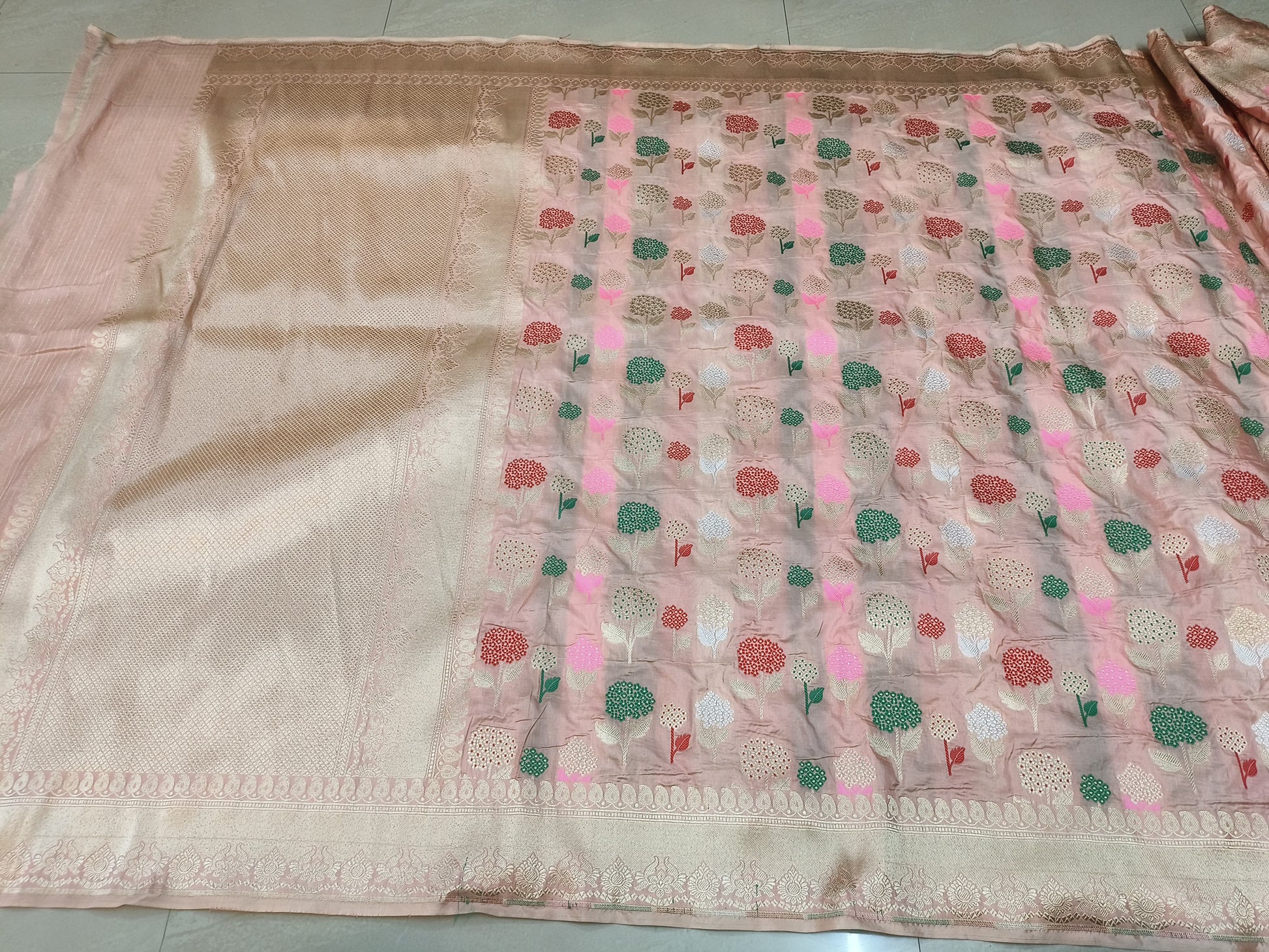 Take a walk down memory lane with this gorgeous handwoven pure Banarsi Katan Silk saree .