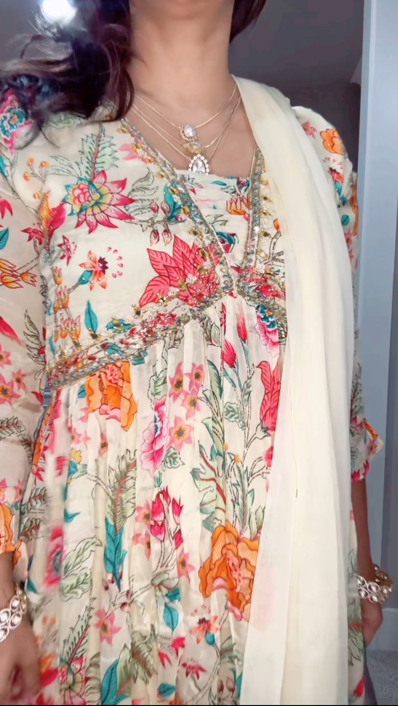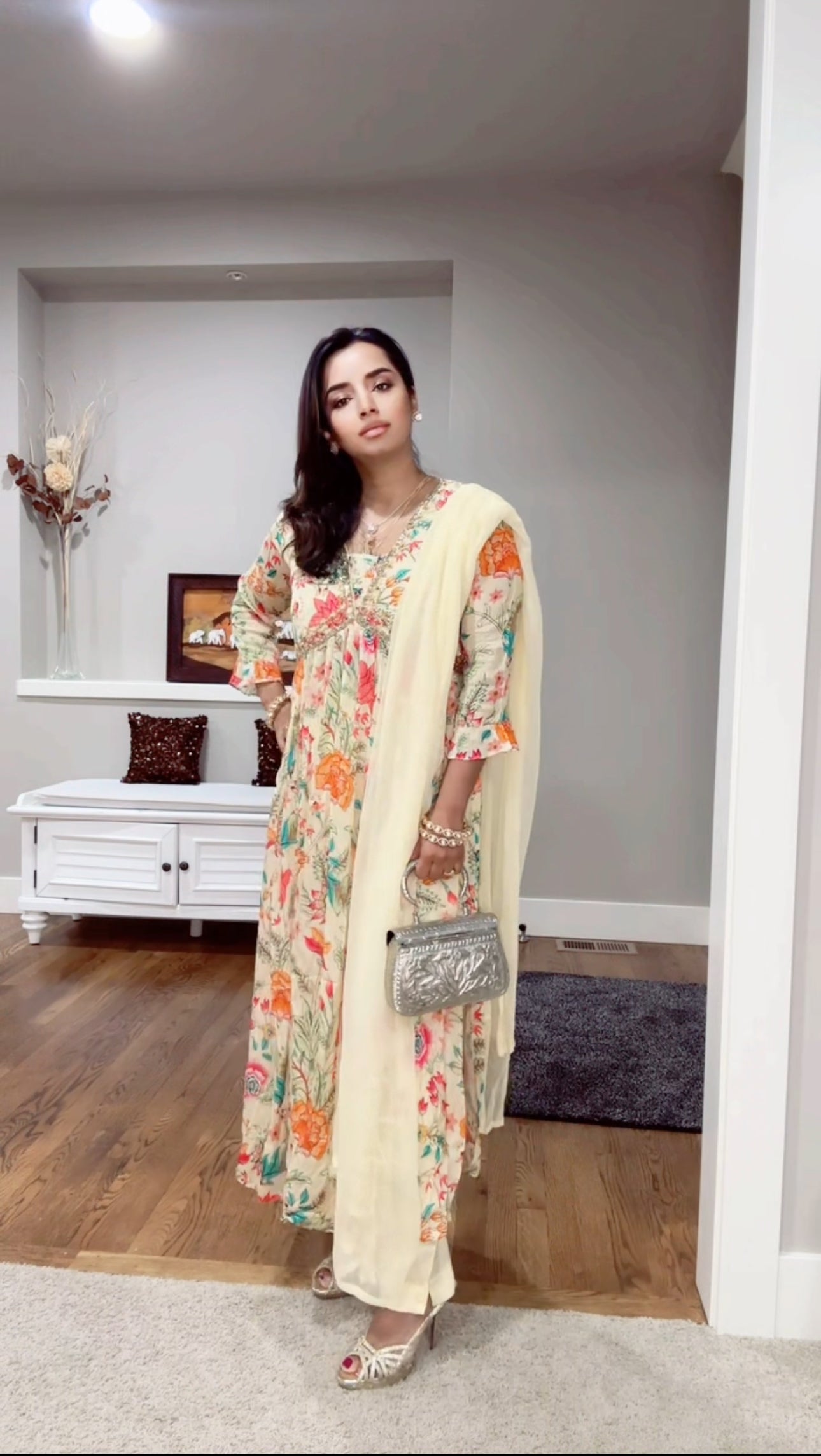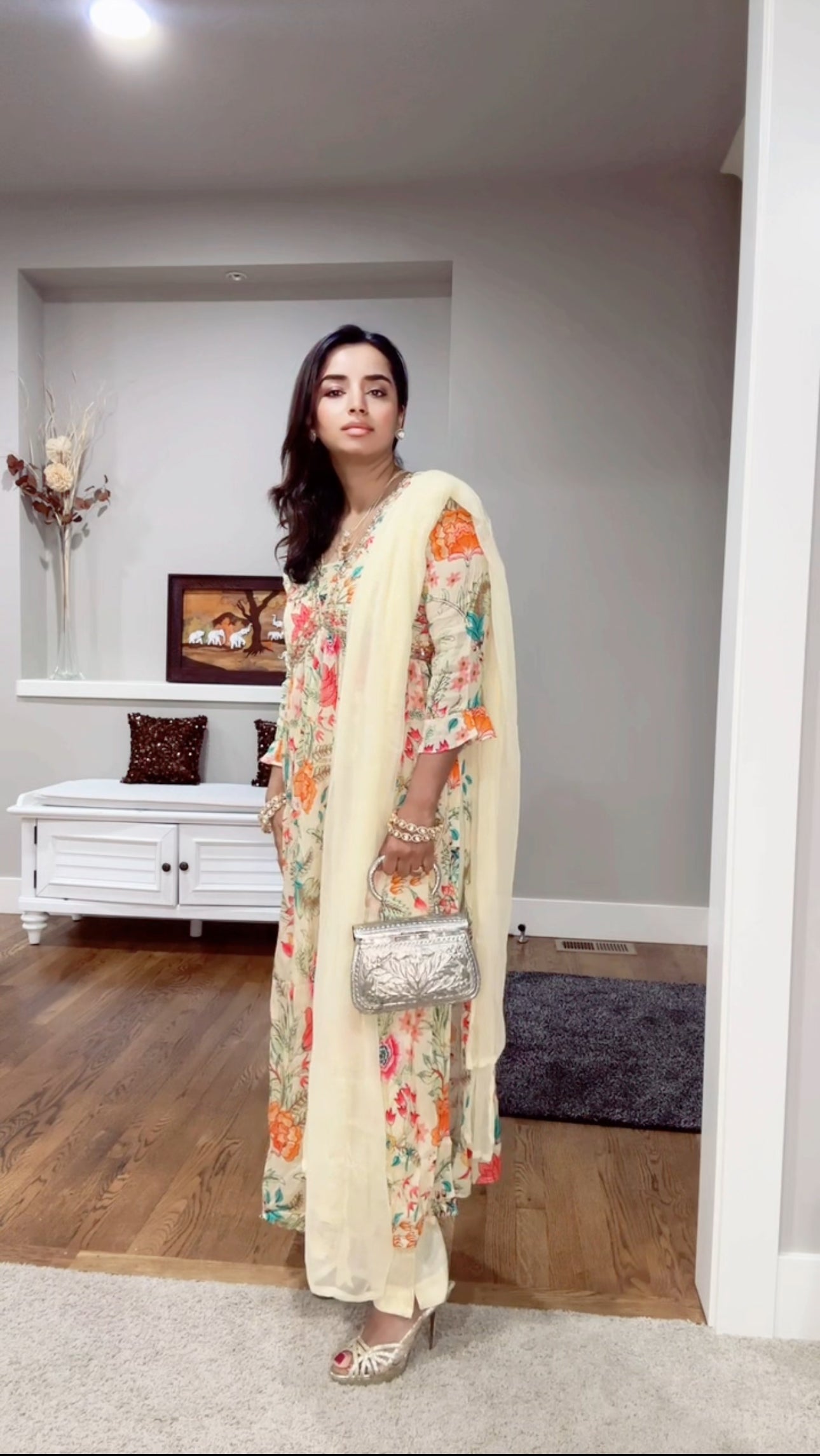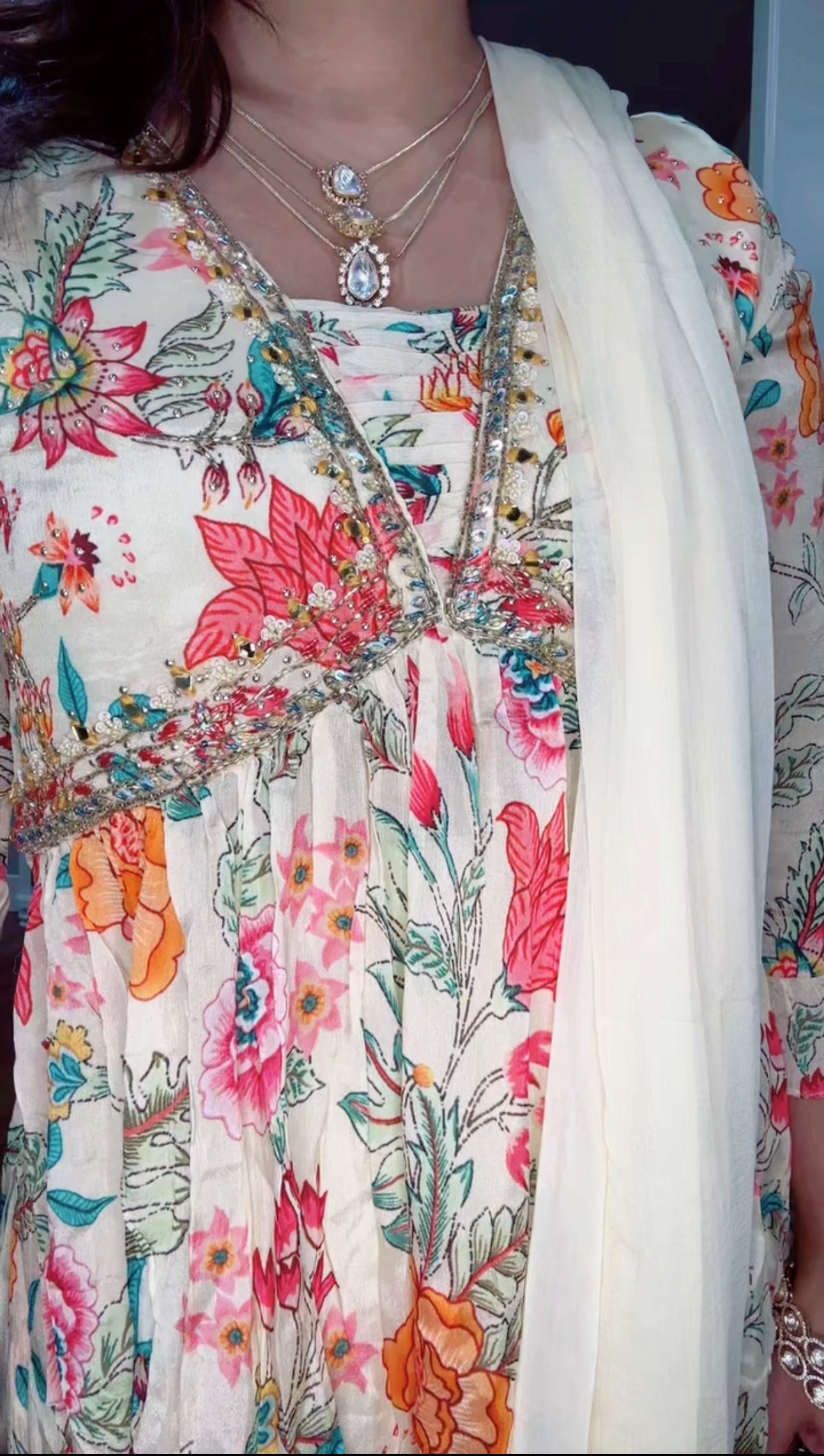 Pure Georgette salwar suit with beautiful neckline and hand cut Dana and sequin work .