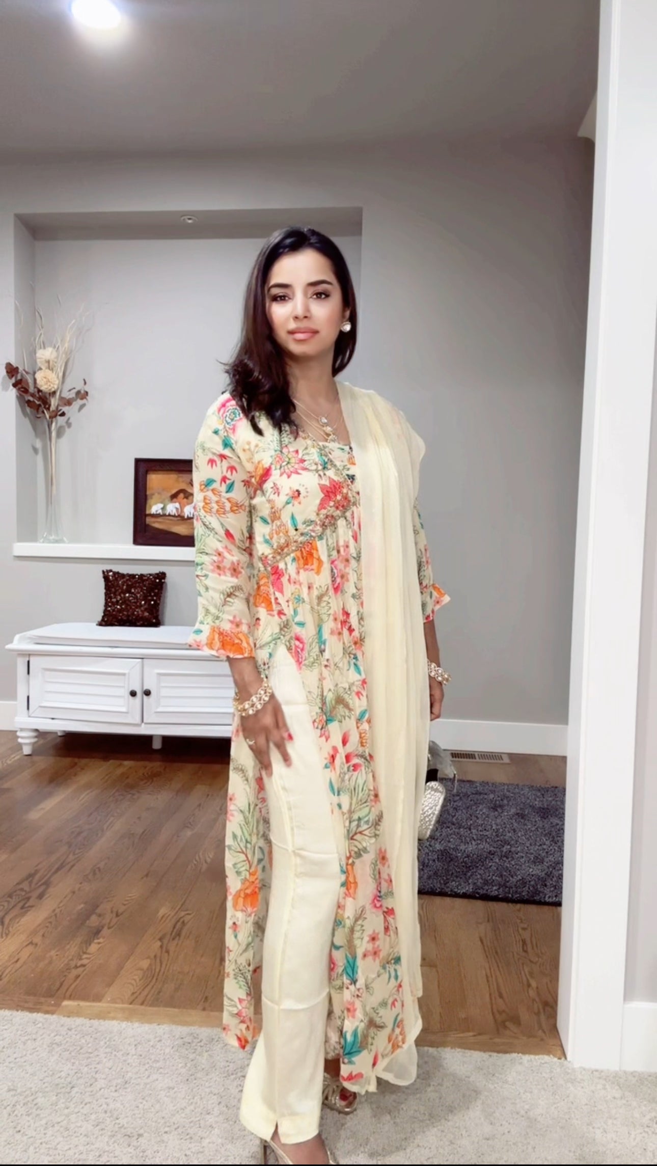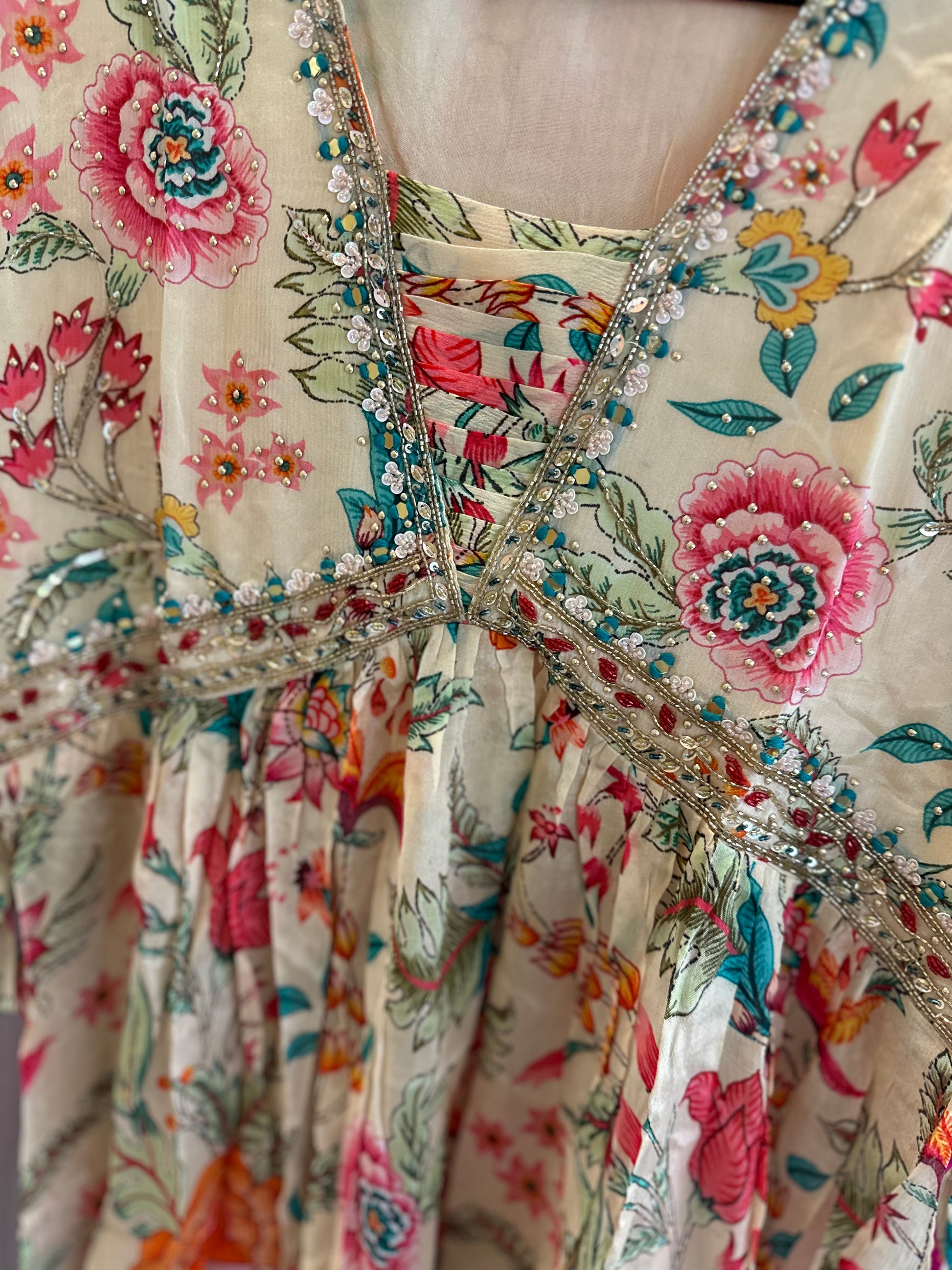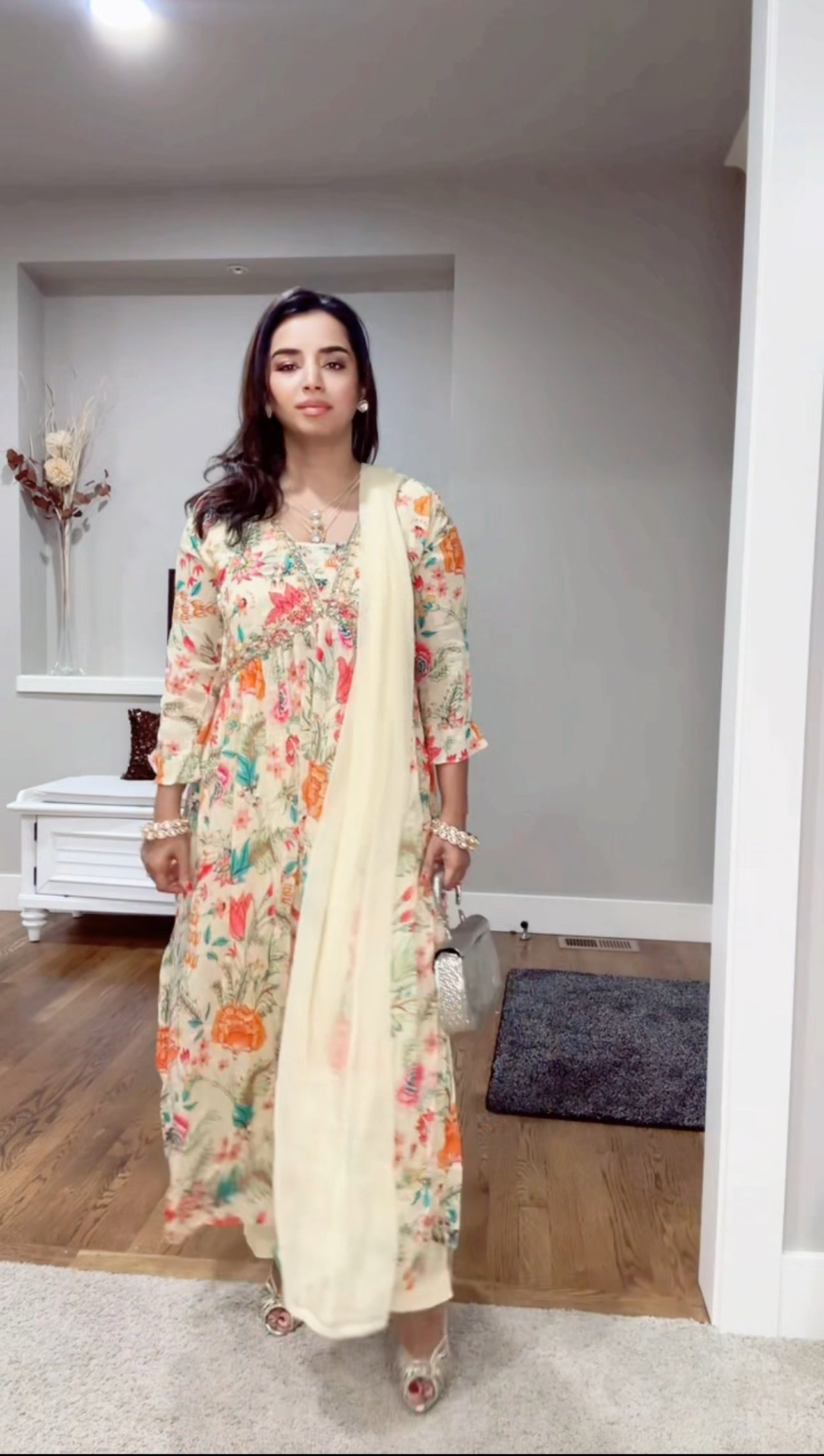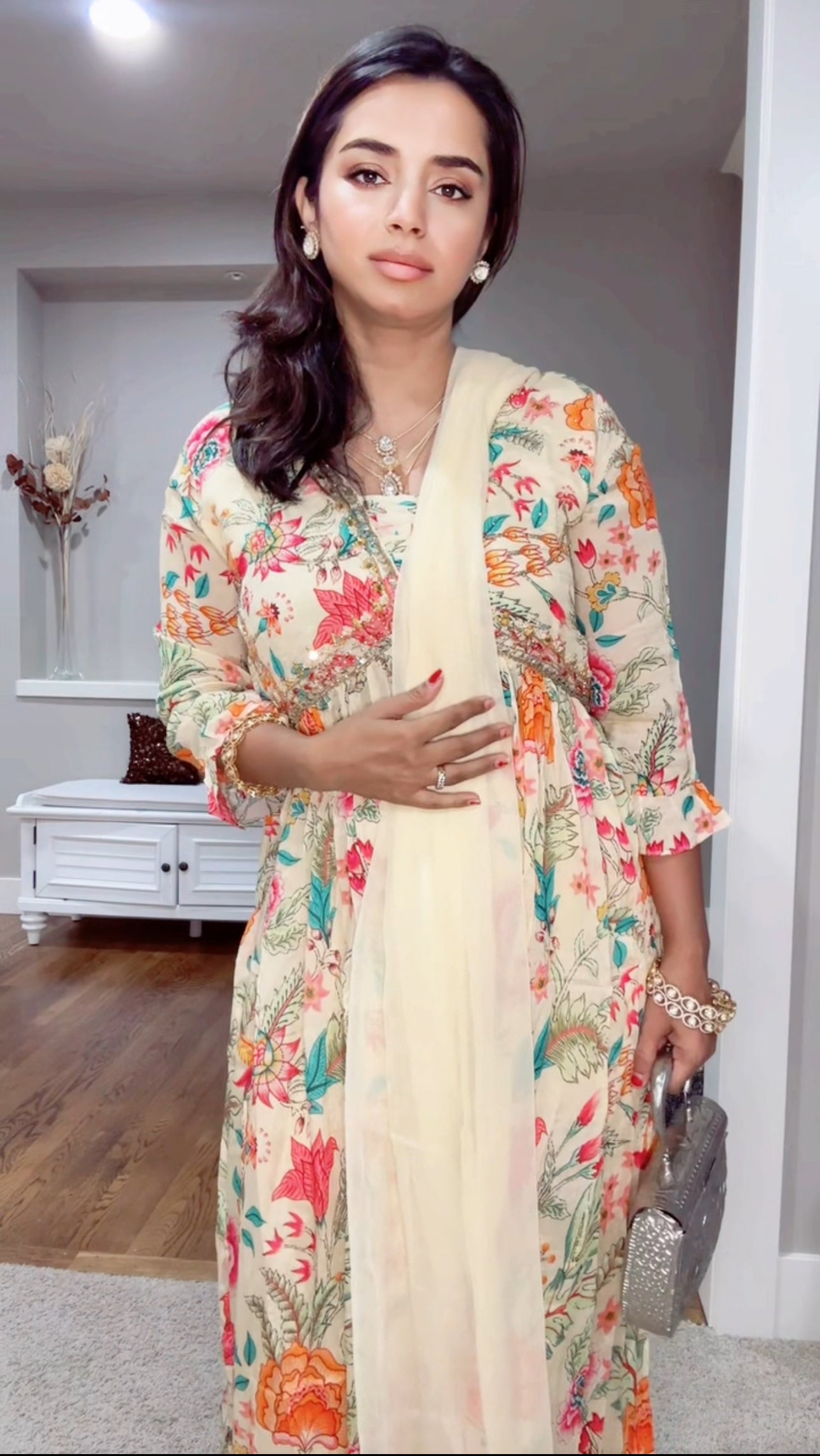 Pure Georgette salwar suit with beautiful neckline and hand cut Dana and sequin work .