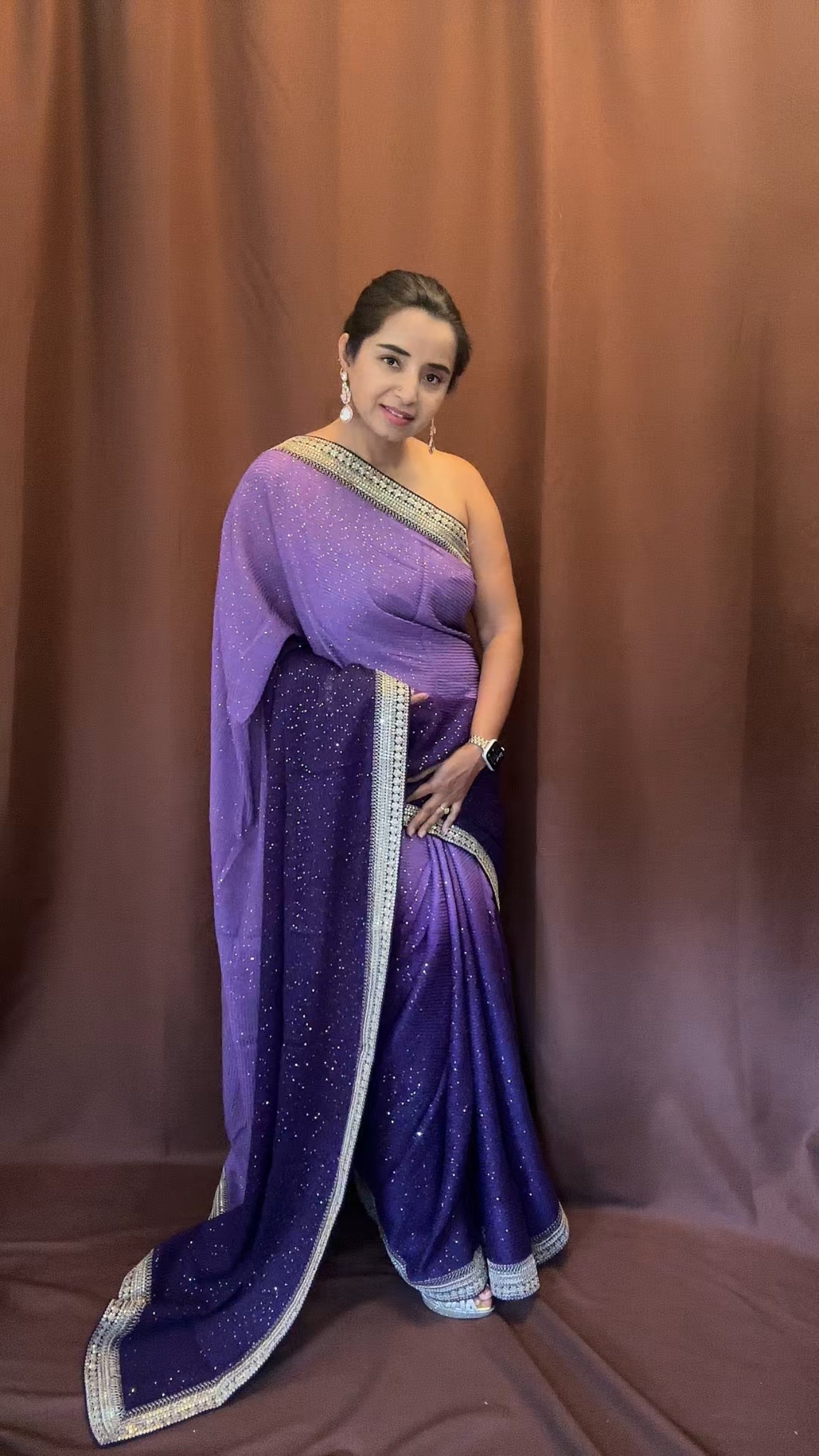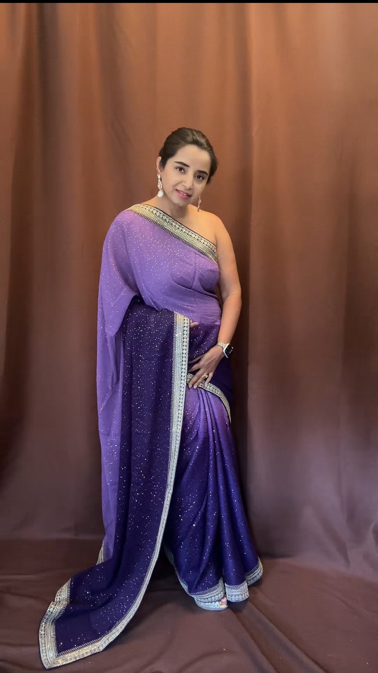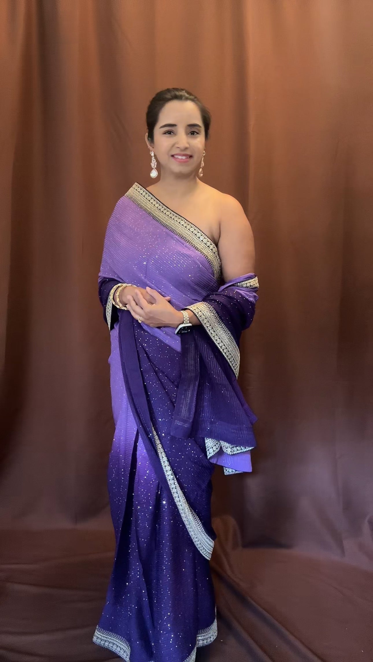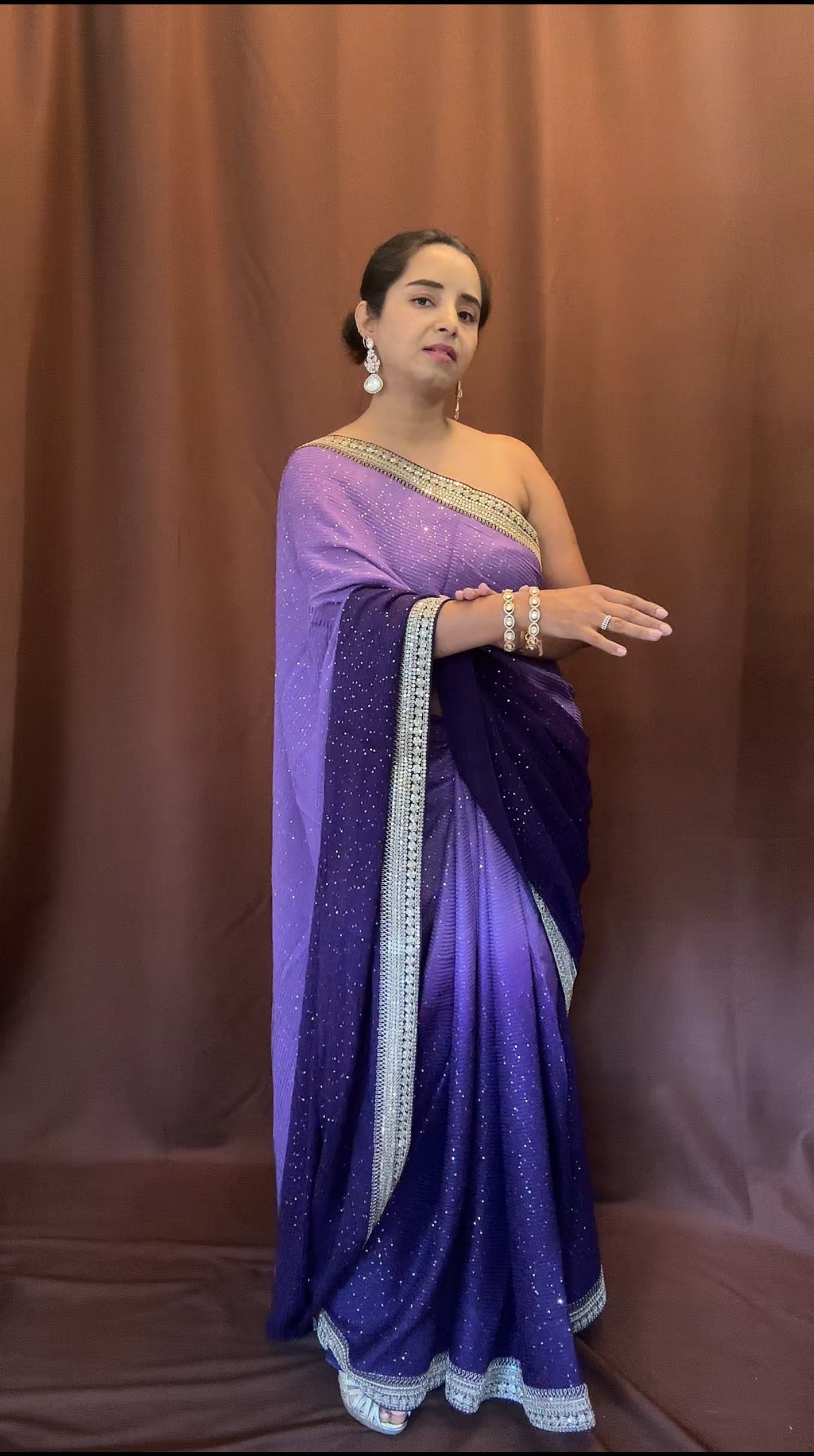 Pure Georgette Sequins Sabyasachi Designer Saree - purple with blouse fabric