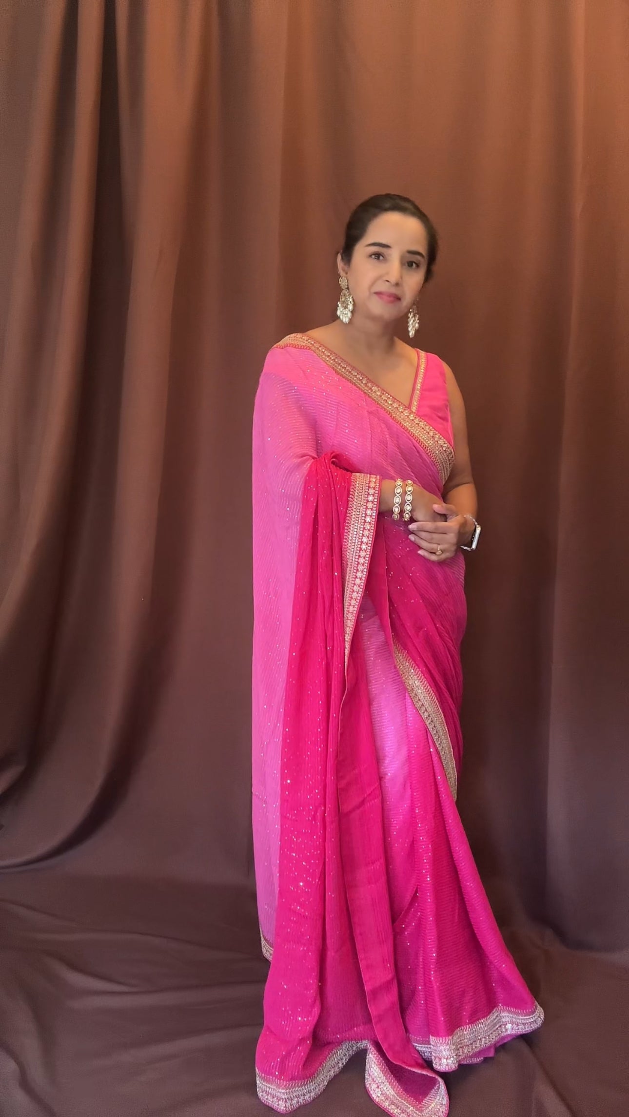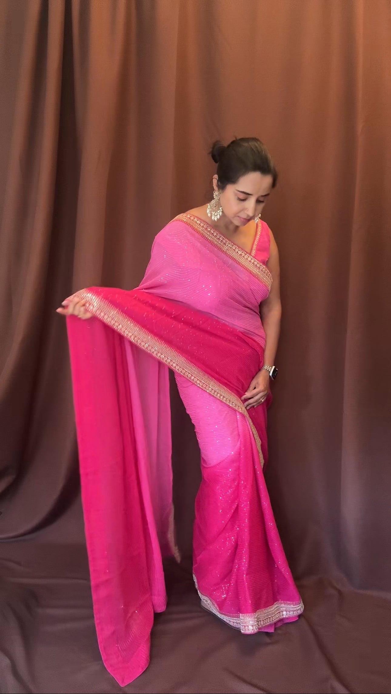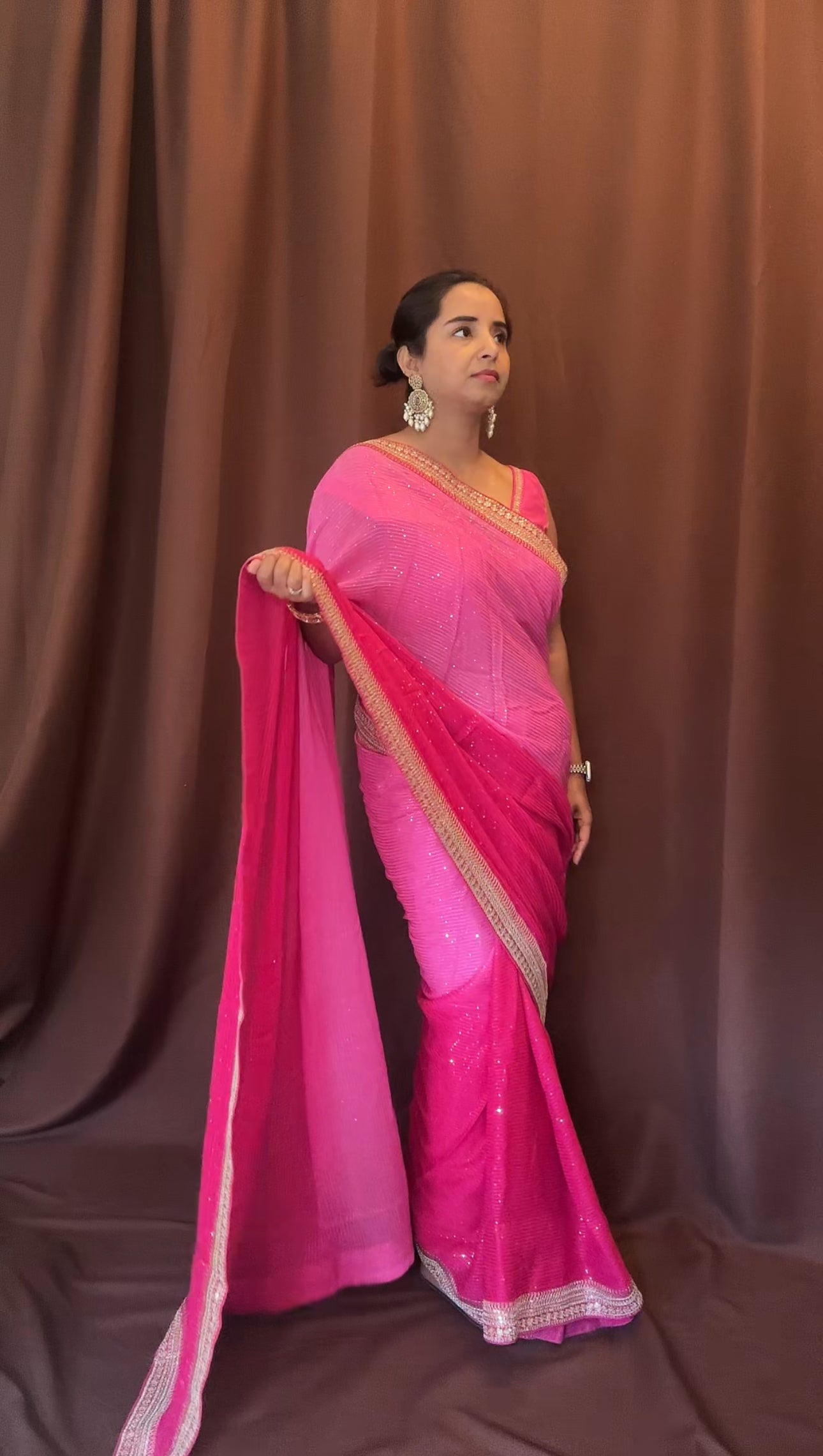 Pure Georgette Sequins Sabyasachi Designer Saree - Pink with blouse fabric