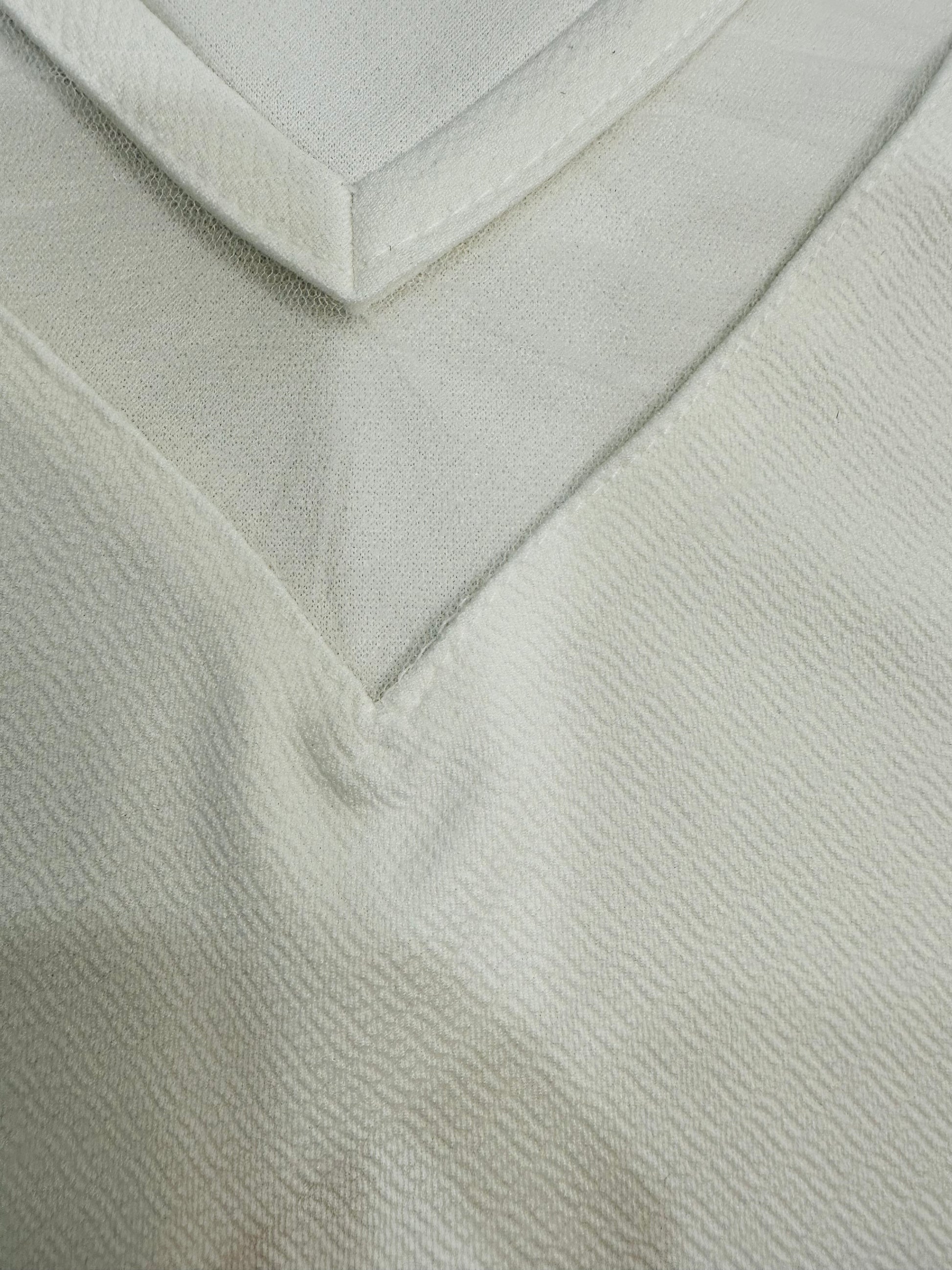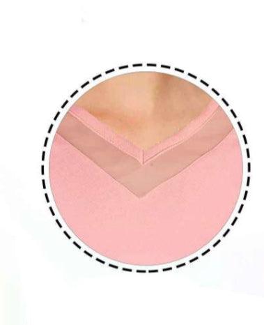 Soft net neckline adorns this short sleeves stretchy crepe-jersey top with a slim fit.